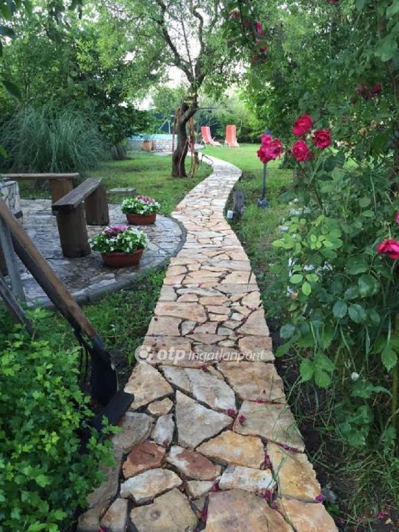 A kertben kerti tavat alakítottak ki, melyet a mellékelt képeken is jól láthatóan, gyönyörű út és növényzet vesz körül. Az egész kert gondozott, a szerető kezek munkája meglátszik rajta.