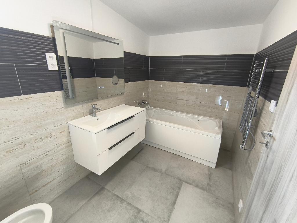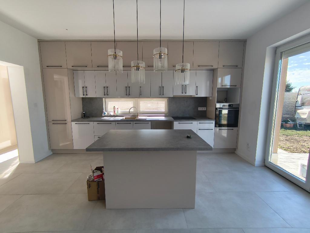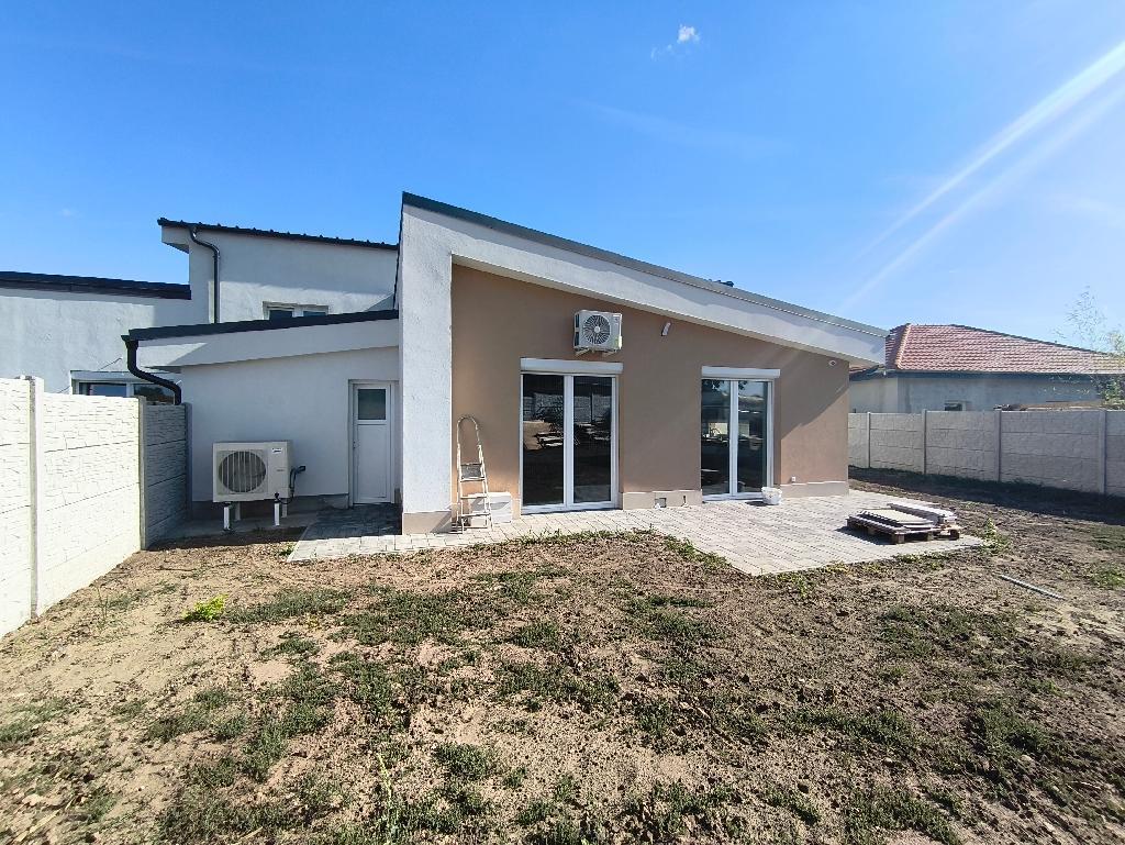 Fejér megye, Seregélyes 107 nm-es új építésű ikerház 1-es lakása eladó. Az ingatlan kulcsrakész állapotban 2025. október végén kerül átadásra. A belső kétszintes 107 nm hasznos alapterületű ingatlanhoz 470nm-es saját kert, 17,73 nm-es garázs, ezenfelül két autó számára kocsibeálló, 4 nm-es tároló és 12 nm-es terasz tartozik. A lakóegységek a garázsnál csatlakoznak. A meghirdetett ingatlan az alaprajzon a pirossal jelölt. A tégla (B30) építésű, szigetelt ingatlanban tágas amerikai konyhás nappali, 3 szoba, 2 fürdőszoba és kamra található. Beszerelésre került az új és modern konyhabútor és az előszoba bútor is. Az ikerház 15 cm-es külső, a födém 25 cm-es szigetelést kapott. A külső nyílászárók 3 rétegű műanyagok elektromos redőnnyel és szúnyoghálóval felszereltek. A házban még minden belső falszín választható. Fűtése környezetbarát,energiatakarékos hőszivattyús rendszer, padlófűtéses hőleadással, valamint minden hálószobába és a nappaliba hűtő fűtő klíma kerül. A vételár tartalmazza a külső-belső vakolást, külső-belső ablakpárkányokat, belső fehér készre festést, villany alapszerelést, padlófűtést, gépészeti alapszereléseket, az elektromos kaput, kerítést, a riasztó és a kamera rendszert, konyhabútort, előszobabútort, belső dekorfóliás ajtókat tokkal, kilinccsel, kapcsolók és dugaljakat, burkolást, szanitereket, alumínium redőnyöket,térkövezést, tereprendezést, parkosítást és a füvesítést is. A meghirdetett ingatlan az alaprajzon a pirossal jelölt.Jól átgondolt, élhető terekkel megálmodott, a legújabb rendszerek felhasználásával készülő ingatlan megvásárlásával egyszerre teremthet egy igényes, stílusos és barátságos otthont. Teljes körű ügyintézésben segítjük ügyfeleinket díjtalanul: Falusi CSOK, CSOK igénylése, kedvezményes hitel mobil bankári szolgáltatással, adásvétel teljes lebonyolításával. Bővebb információkért, kérem keressen bizalommal, akár hétvégén is.
