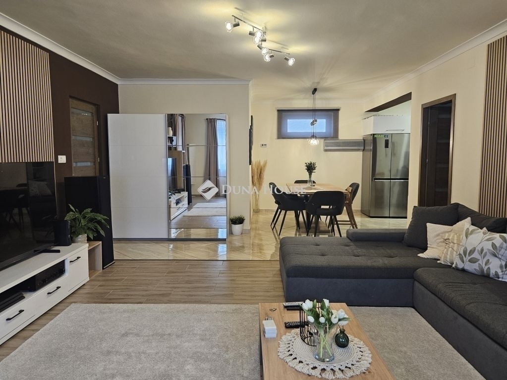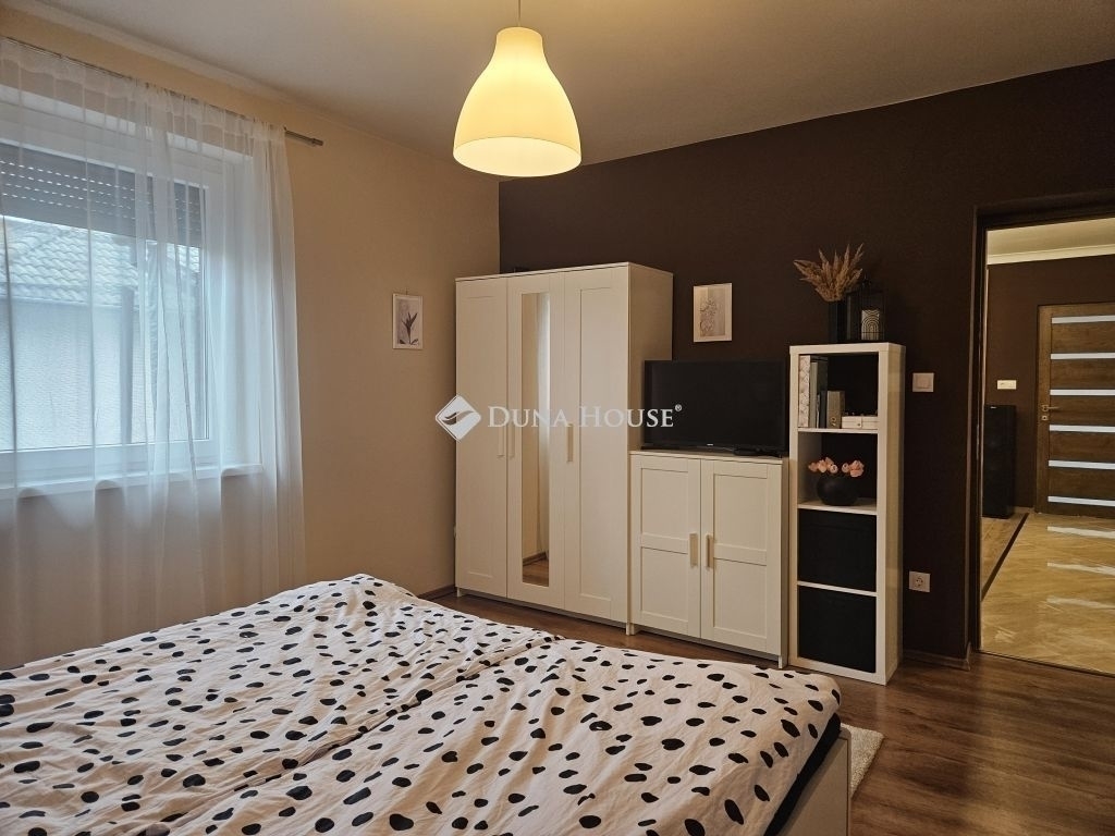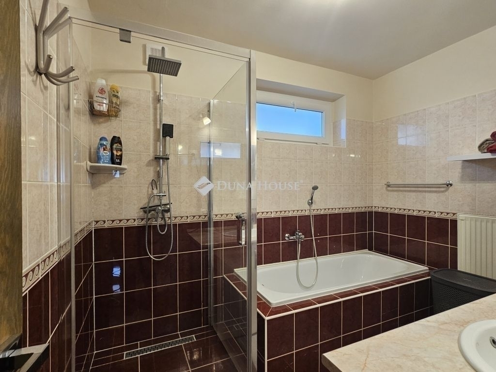 Eladásra kínálom Máriagyűd egyik kedvelt, rendezett utcájában ezt a gondosan karbantartott, 1996-ban épült családi házat, amelynek jelenlegi tulajdonosai az építéstől kezdve ugyanazok, így az ingatlan teljes előélete ismert. A ház Porotherm 38-as téglából épült, teljes körű homlokzati, lábazati és födémszigeteléssel rendelkezik. A beton födém lehetőséget biztosít a tetőtér beépítésére, így igény esetén a lakótér tovább bővíthető. Az ingatlan energiatakarékos megoldásokkal felszerelt: egy 5 kW-os napelemes rendszer működik rajta, amely még 8 évig szaldó elszámolásban marad, és akár 7,5 kW-ig bővíthető. A rendszer jelenleg fedezi a teljes villamosenergia-felhasználást. A fűtésről gázkazán és vegyes tüzelésű kazán gondoskodik, padlófűtéssel kiegészítve. A kellemes hőmérsékletet egész évben két inverteres klíma és egy hűtő-fűtő klíma biztosítja. A fűtési rendszer igény szerint hőszivattyúval is tovább fejleszthető. A 33 m²-es melléképületben egy 23 m²-es, szerelőaknás garázs, valamint egy 10 m²-es tároló és kazánház kapott helyet. A melléképület mögött betonozott udvarrész található, amely alkalmas medence kialakítására is. Az ingatlan korszerű, távfelügyeletes riasztórendszerrel felszerelt, amely a nyílászárókra és a garázsra is kiterjed, így a biztonság is megoldott. A ház ideális választás mindazok számára, akik egy jól karbantartott, energiatakarékos, bővíthető otthont keresnek nyugodt környezetben. Megtekintés és további információ miatt várom hívását bizalommal.