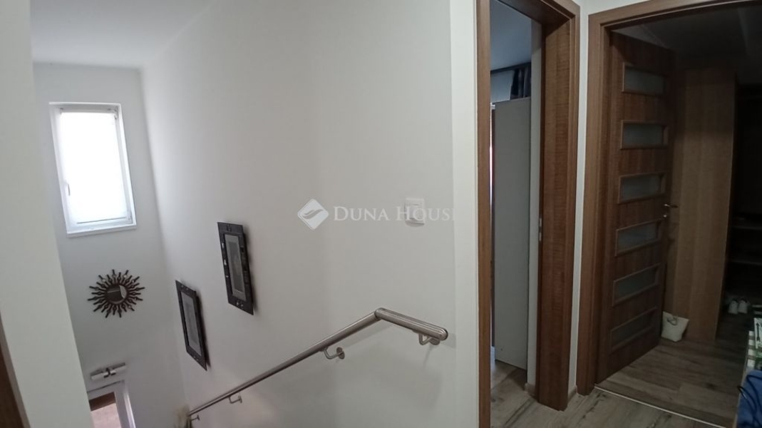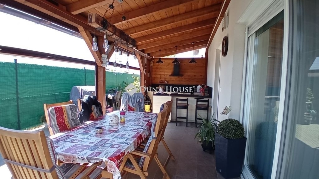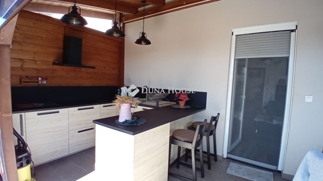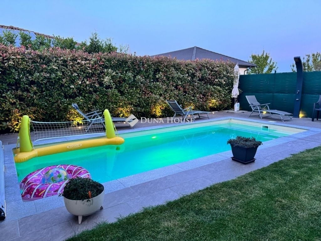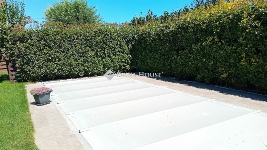 Eladó Siófokon egy újszerű, luxus kialakítású, medencés családi ház. Ez a különleges ingatlan 2019-ben épült tégla szerkezettel, 15 cm-es szigeteléssel, a modern kor követelményeinek maximálisan megfelel. Nettó 148 m2 alapterületével, valamint hozzá tartozó 19 m2-es fedett terasszal és egy 17 m2-es fedett erkéllyel is büszkélkedhet.Az otthon földszintjén található az amerikai konyhás nappali, előtér, egy külön WC, tároló, közvetlen kapcsolattal a teraszhoz.A teraszon egy nyári konyha és étkező lett kialakítva, mely esős idő esetén elektromos redőnnyel zárhatóvá tehető.Az emeletre belső lépcsőfeljárón keresztül lehet feljutni, ahol 3 hálószoba, egy gardrób, egy fürdőszoba WC-vel és bidével, egy közlekedő, háztartási helyiség, és a már említett 17 m2-es fedett erkély helyezkedik el, mely szintén téliesíthető!A nyílászárók modern műanyagból készültek, redőnnyel és szúnyoghálóval felszerelve, így az épület kiválóan szigetelt. A házban gáz cirkó + padlófűtés biztosítja a meleget, míg a hűtésről 3 klímaberendezés gondoskodik. További jelentős előny, hogy 11 kW kapacitású napelem került felszerelésre, így az elektromos energia számla gyakorlatilag nulla.A kertet, amely gondosan parkosított, automata öntözőrendszerrel, különböző növényekkel és egy 6x4 méteres, fűthető medencével álmodta meg a jelenlegi tulajdonos. A medence gépészete a kerti kis házban található.A család autóinak a 2 állásos garázsban biztosítottak a helyet.Ha felkeltette az érdeklődését ez az exkluzív ingatlan Siófokon, akkor várom megtisztelő hívását!Az ingatlan megtekintéséhez előzetes időpont egyeztetés szükséges. Szolgáltatásunk vevők számára ingyenes. Ne habozzon, keressen minket bizalommal, és tekintse meg további hirdetéseinket is!