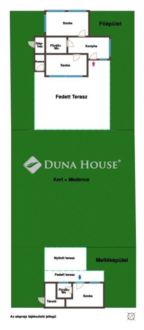 Vendégház1 klimatizált szobasaját fürdőszoba zuhanyzóvalközvetlen kert- és medencekapcsolatKert és kültéri pihenőtérkarbantartott, fűthető medence napozóágyakkalfelszerelt kültéri konyha főzési és grillezési lehetőséggelhangulatos tűzrakóhelyzárt udvari parkolóhelyek