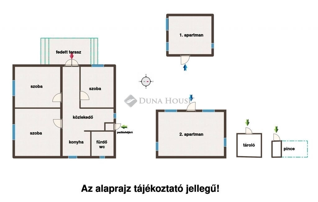 A kényelmes méretű kertben két újszerű állapotú, külön épületben található apartman lett kialakítva, valamint tárolóhelyiség és pince is rendelkezésre áll.