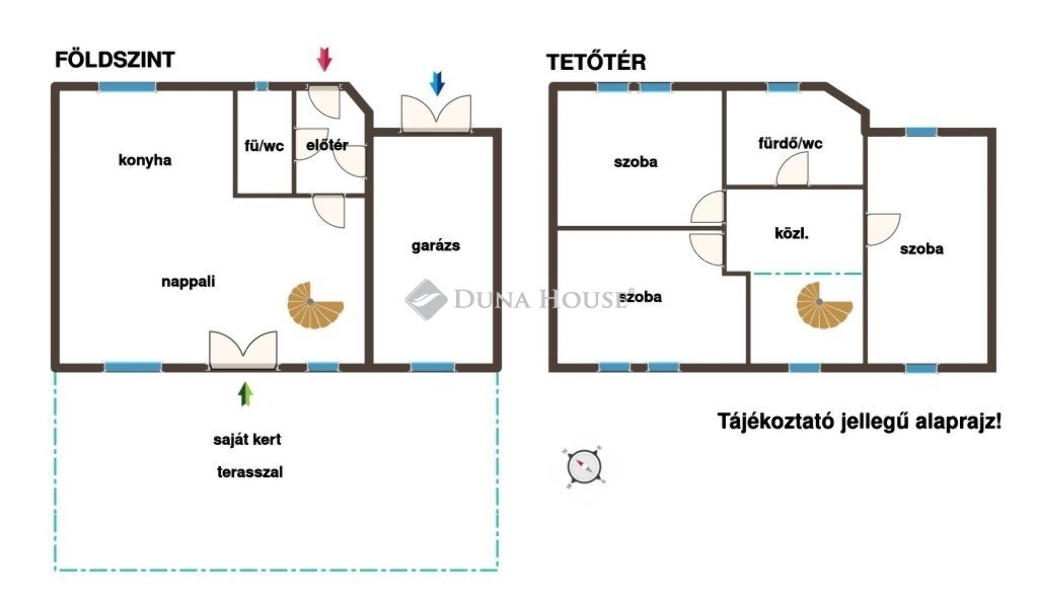 - garázs - a lakótérhez közvetlen kapcsolattal