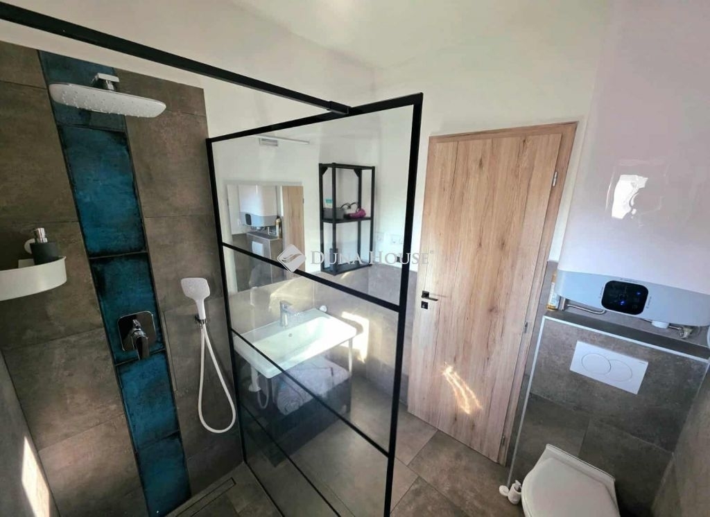 A ház napelemmel, elektromos padlófűtéssel és klímával felszerelt, így energiatakarékos és komfortos.