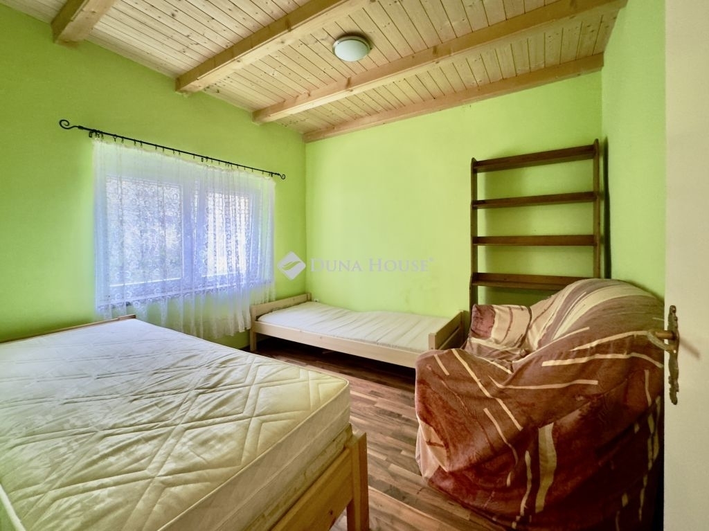 Siófok-Sóstó egyik legkedveltebb részén, eladó egy önálló, 746 m²-es telken fekvő, szabadon álló nyaraló, mindössze néhány perc sétára a Sóstói Strandtól és a Pusztatorony tértől.A környék különlegessége, hogy a csendes, zöldövezeti hangulat közvetlenül találkozik a balatoni üdülőélettel: a közelben éttermek, büfék, termelői piac, gyermekprogramok és a több száz méteres partszakasszal rendelkező strand kínál kényelmet és folyamatos kikapcsolódási lehetőséget.A telek teljesen körbekerített, zárt, saját bejáratú, az autós kapu pedig a ház mellett vezet el, így a kert hátsó részében több autó számára is biztosított a kényelmes és biztonságos parkolás. A kertben 2 db kerti csap is található.Az ingatlan nettó 48 m² hasznos alapterületű, amelyet tovább növel egy 38 m²-es, kert felé tájolt, tágas, fedett terasz. A terasz közvetlen kertkapcsolattal rendelkezik, ami ideális nagyobb társaságok, családi programok vagy pihenés céljára. A ház az utca vonalától távolabb helyezkedik el, a kerítés és az épület közötti területet fák és bokrok teszik intimebbé, erre az oldalra néz mindhárom szoba.A belső elrendezés praktikus és jól kihasználható: a bejárati ajtón belépve a konyha fogad, innen nyílik a három külön bejáratú szoba, valamint az ablakos fürdőszoba wc-vel. Több nyílászárót műanyagra cseréltek, redőnyökkel felszerelve.A házba bevezetésre került a villany és a vezetékes víz, a szennyvízelvezetést emésztő biztosítja. Gáz nincs bekötve. Fűtés jelenleg nincs kiépítve, azonban klíma telepítésével könnyedén megoldható lehet. A meleg vizet villanybojler szolgáltatja.Az ingatlan Üh-1-sz besorolású, amely 25%-os beépíthetőséget és minimum 50% zöldterületet ír elő. A jelenlegi beépítettség még nem éri el a maximumot, így igény esetén további bővítés vagy átalakítás is lehetséges.Az elhelyezkedés szempontjából az ingatlan kifejezetten értékálló választás: a Sóstói Strand közelsége, a Pusztatorony tér vendéglátóhelyei, a környék közösségi és rekreációs lehetőségei egész szezonban vonzó célponttá teszik. Akár saját nyaralónak, akár befektetésként kiemelkedő potenciállal rendelkezik.