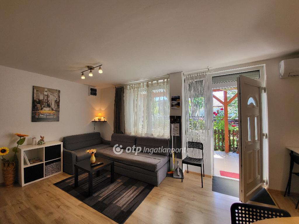 Balaton Déli part, Siófok, 68 m2 ikerházrész eladó. A kivett hétvégi házként nyilvántartott, önálló helyrajzi számú ingatlanban két apartman került kialakításra. A 4 éve teljeskörűen felújított, 62 m2-es, utcafronti lakóteret növeli egy hangulatos, 13 m2-es terasz, a jól megtervezett udvaron pedig füves, virágos kert, 50 m2-es térkövezett terület, valamint garázs és egyéb melléképület is helyet kapott, így minden biztosított a mindennapi élet teendőihez vagy a pihentető, feltöltő nyaraláshoz. Az ingatlan fűtéséről és hűtéséről távolról irányítható klímák gondoskodnak, továbbá minden szobában megoldott az elektromos fűtőpanel működtetése, a telekre bevezetett gáz pedig a hagyományos fűtési rendszer kialakítását is lehetővé teszi. A két szintes apartmanok igény szerint összenyithatók, így akár egy nagy család részére is ideális lehetőség. Az ingatlan elhelyezkedésének és kialakításának köszönhetően alkalmas akár többgenerációs családoknak is állandó lakhatásra vagy nyaralásra, de befektetésként, részben vagy egészben kiadásra is kiváló, ritka lehetőség. Óvoda, iskola, tömegközlekedés, bevásárlási lehetőség, egészségügyi intézmény, a Belváros, a Kikötő könnyen elérhető, a Szabadstrand pedig csak pár perc séta. Bővebb információért keressen telefonon!