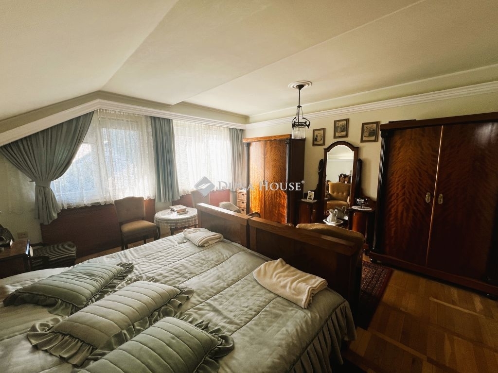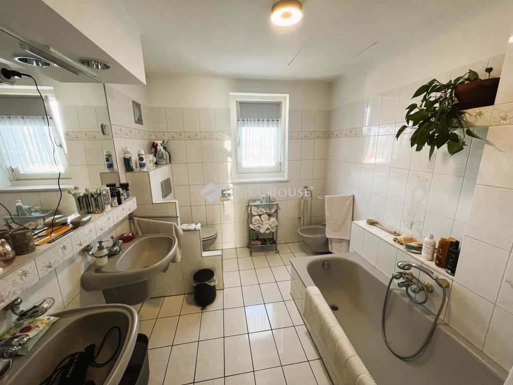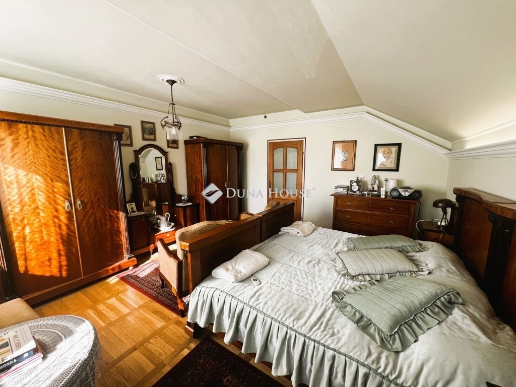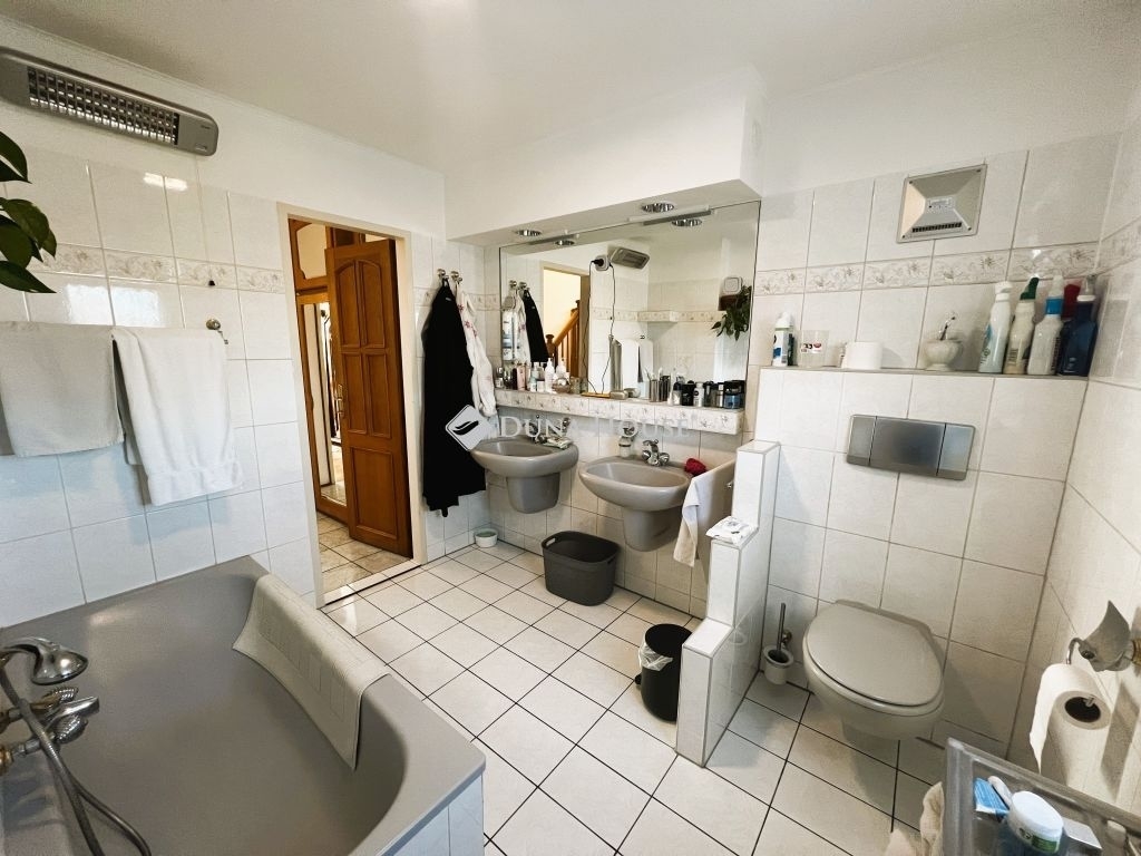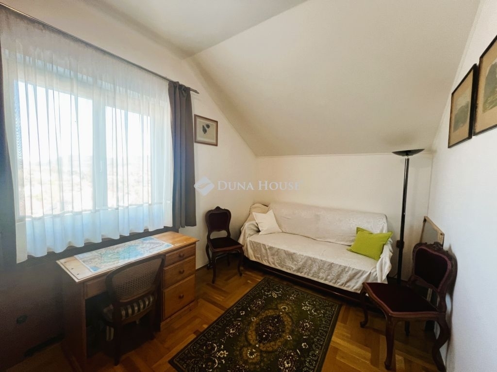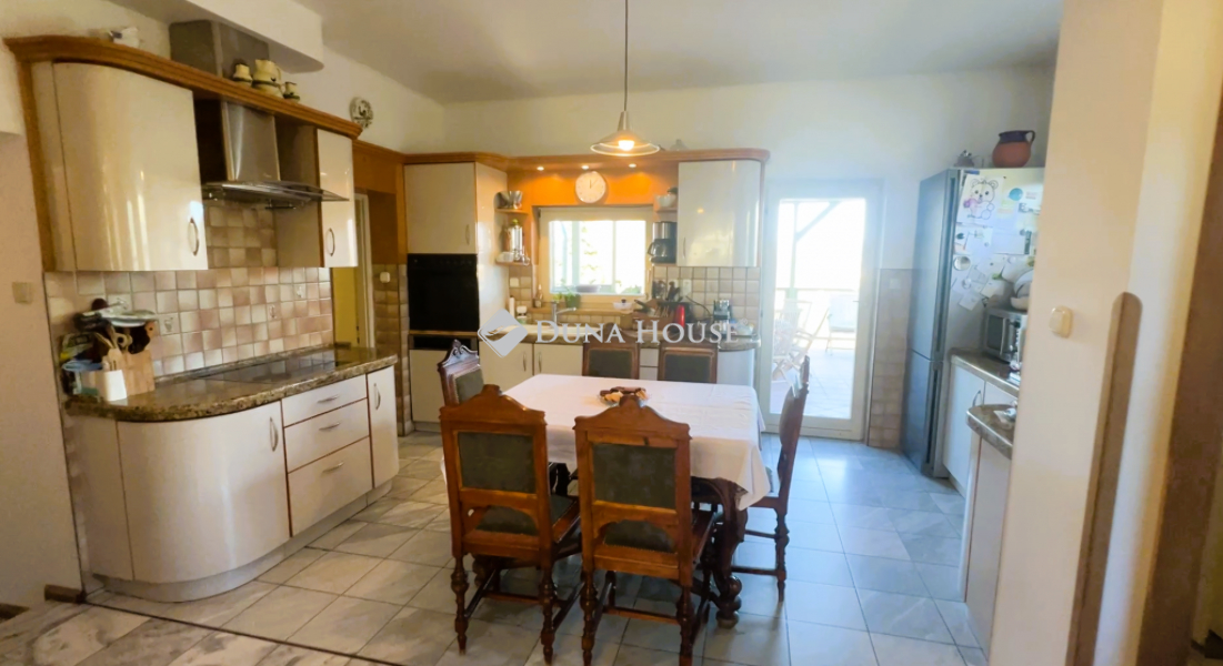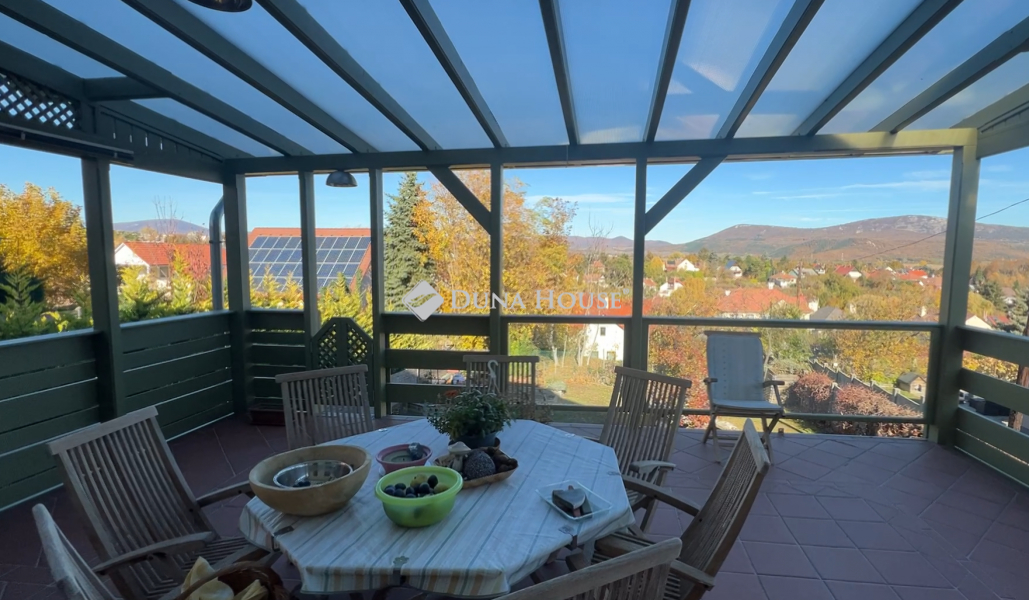 ILYEN ÖRÖK PANORÁMÁRÓL ÁLMODUNK!Eladó egy különleges, alpesi stílusú, 220 nm-es, tégla építésű családi ház Solymár csendes utcájában, Pest vármegyében. Az ár tartalmazza az egyedi készítésű konyhabútort, amelynek munkalapjai valódi gránitból készültek. A konyha funkcióját, a gépesített bútor mellett, a 6 négyzetméteres kamrahelység teszi teljessé. A ház kiemelkedően jó fényviszonyokkal és alacsony rezsiköltséggel büszkélkedhet, amit a külső- és tetőszigetelés is elősegít.Az ingatlan folyamatosan karbantartva, újítva volt. Utoljára a tetőszerkezet került felújításra 2019-ben. Az otthon melegét központi gázkazán által működtetett padlófűtés biztosítja. Az egyedi belső nyílászárók, az ipari áram (3x16 A), valamint a nappali és éjszakai áram is hozzájárul az otthon kényelméhez. A garázs mellett egy fedett kocsibeálló is rendelkezésre áll, így az új tulajdonosnak nem kell aggódnia az autók biztonságáért. A jó tömegközlekedés, a közelben lévő boltok és egészségügyi intézmények mind hozzájárulnak a kényelmes és gondtalan életvitelhez.A házat a kényelem és a praktikum jellemezi. A padlófűtés mellett rendelkezik kandallóval is, ami garantálja a hangulatot a hideg téli napokon. A 30 nm-es fedett teraszról - nem túlzás - lélegzetelállító örök panoráma tárul elénk a Pilis hegyvonulatára, az új fa nyílászárók pedig szúnyoghálóval és hőreflektáló üveggel vannak ellátva, így a nyári hónapokban is élvezhetjük a természet közelségét. A konyha és a nappali igazi kuriózum a görög és kanadai márvány járólapokkal, míg a réz vezetékek (víz, gáz, villany) hosszú távon biztosítják az ingatlan fenntartásának biztonságát. A mellékhelyiségekben szagelszívó fokozza a kényelmet, míg az emeleti fürdőben egy speciális kialakítású eszköz biztosítja a dupla mosdó feletti hatalmas tükör páramentességét a legforróbb fürdőzés esetén is.Solymár egy igazán varázslatos hely, ahol a természet közelsége és a városi kényelem tökéletes összhangban van. A központjához közel eső, mégis csendes utcában fekvő ingatlan lehetővé teszi, hogy élvezze a nyugalmat, miközben mindent megtalál a kényelmes élethez. A Pilis és a Budai-hegység között elterülő településen a friss levegő, a szép tájak és a barátságos közösség teszi teljessé a lakók mindennapjait. Ebben a környezetben nem csak egy új otthont talál, hanem egy teljesen új életstílust is. Fedezze fel Solymárt, és hagyja, hogy elbűvölje e különleges hely hangulata és szépsége.Amennyiben az ingatlan felkeltette érdeklődését, ne habozzon felkeresni!