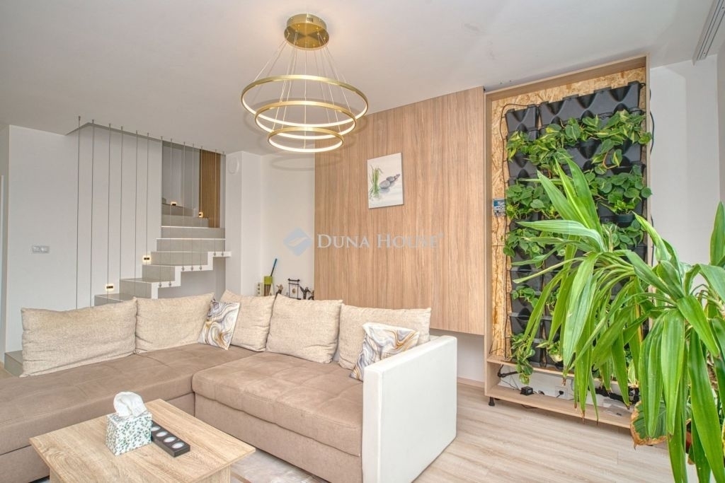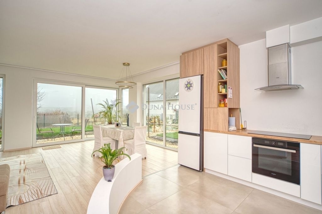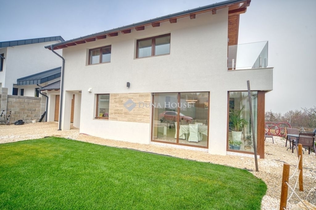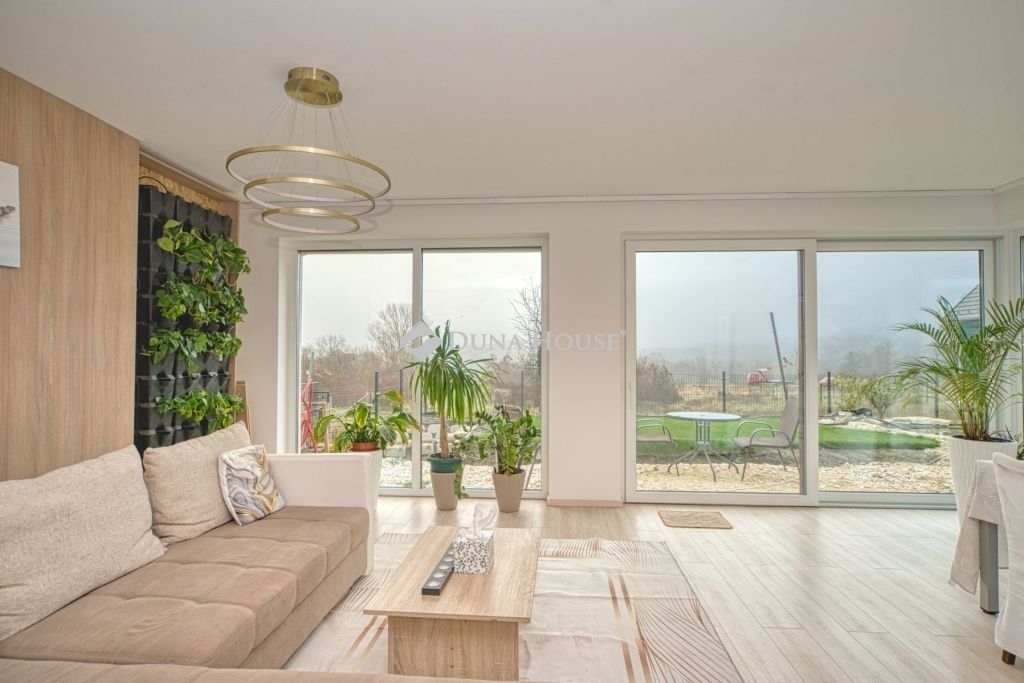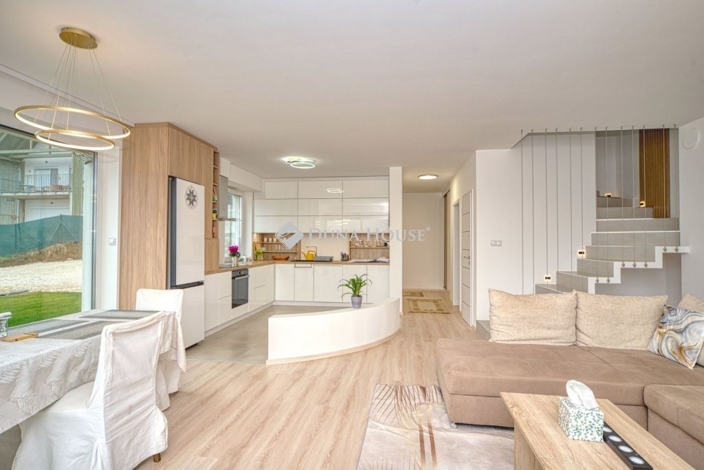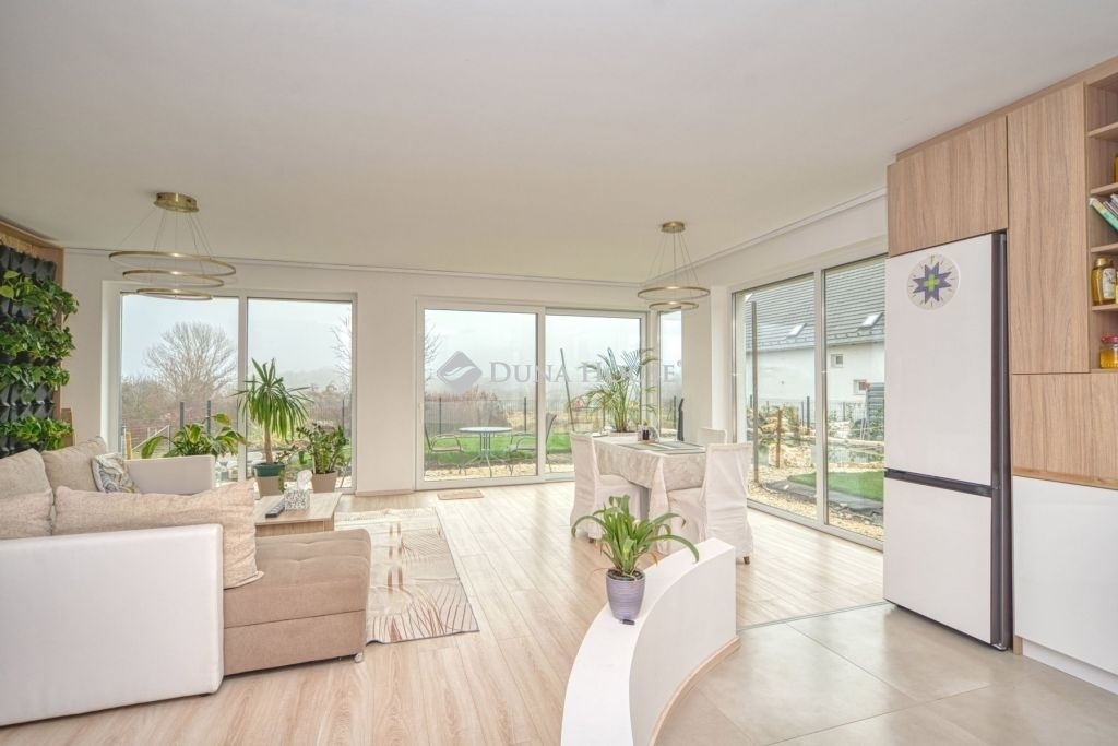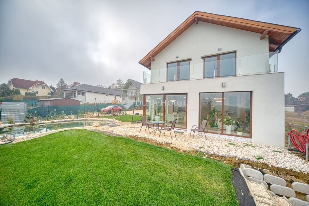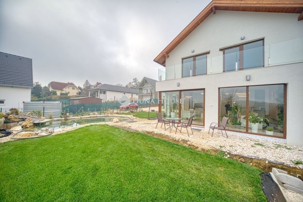 Örök panorámás, minden igényt kielégítő új építésű modern stílusú ikerház.Solymár kedvelt részén: Györgyhegyen, nyugodt környezetben, közvetlen Natura 2000 besorolású terület mellett, a hegyekre néző örök panorámával eladó egy újépítésű két szintes ikerház.Ha csendes környezetben és természetközeli életstílust keres, ne keressen tovább! Ez a 146 négyzetméteres, modern stílusú ikerház Solymár egyik legszebb részén található, ahol a nyugalom és a zöldövezet összetalálkozik.A gondosan megtervezett kert mérete 400 nm, prémium gyepszőnyeggel borított, öntözőrendszerrel és robotfűnyíróval telepített.Az úszótó 6x4 méteres, kb. 100 vízi növénnyel, és csobogó vízeséssel. Az ikerház kiváló elosztással rendelkezik, praktikus kialakítással, emeletenként fürdőkkel, tágas hálószobákkal és intim, kert kapcsolatos terasszal.Az alsó szinten az előszobába belépve azonnal magával ragad a kifinomult ízléssel megálmodott otthon, ahol egy 43 nm-es amerikai konyhás nappali fogad Minket. A prémium minőségű konyhabútor, minden háziasszony álma. Ezen a szinten helyett kapott még egy fürdőszoba, illemhely.Az emeleti szintre kényelmes lépcsőn jutunk fel, három hálószoba, fürdőszoba+wc, várja új tulajdonosait.Az emeleti szobákból élvezhetjük Solymár természeti adottságait az örök panorámán keresztül. A családi otthon 2025-ben épült, közel egy éves látványtervezői munka után nyerte el mai formáját.Az alábbi mondattal jellemezném a házat:Az elegancia a stílus és a minőség találkozása.A vételár ár tartalmazza a gépesített beépített konyhabútort, a teljes befejezést, a térkövezést, kapu kialakítását, és a maradék bútorok befejezését, valamint a terasz kialakítását es burkolását.Az ingatlan Solymáron, csendes környéken található, új építésű ingatlanok szomszédságában, elvehetetlen panoráma, kimagasló infrastruktúra, tiszta levegő és remek közlekedési megoldások jellemzik a környéket.Ez az ikerház tökéletes választás lehet gyermekes családok részére, kialakításának és felszereltségének köszönhetően ebben az állapotában szinte azonnal beköltözhetően.Ne hagyja ki ezt a fantasztikus lehetőséget! Várom hívását!