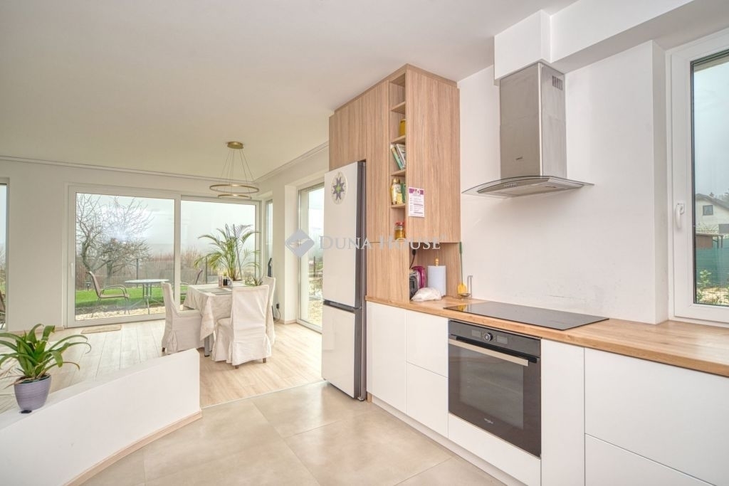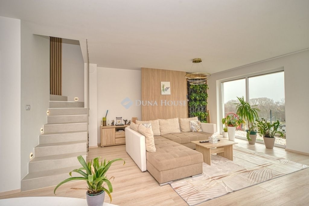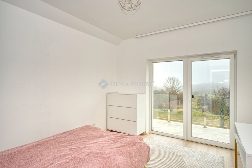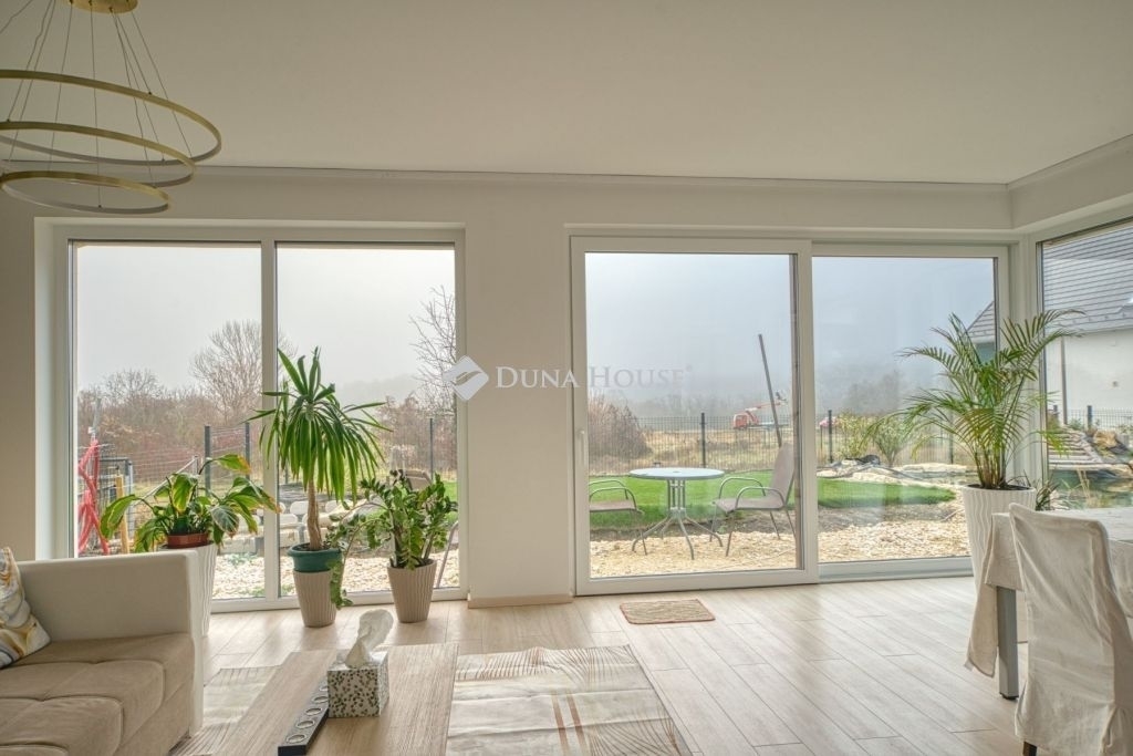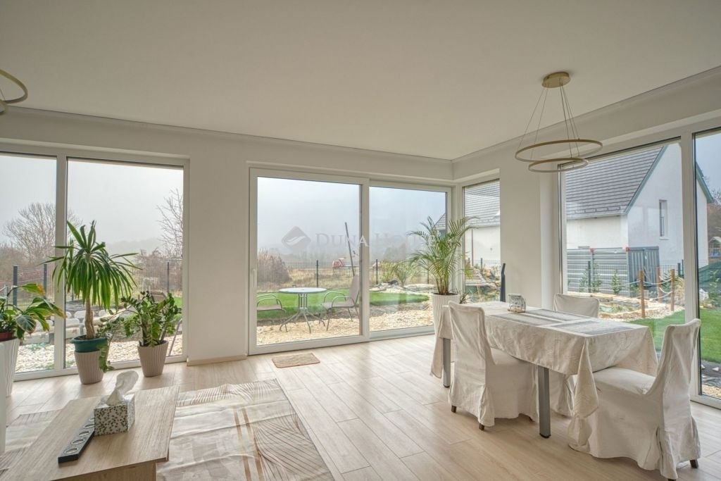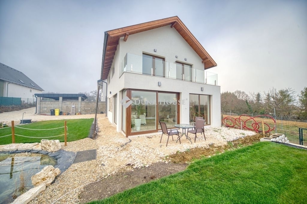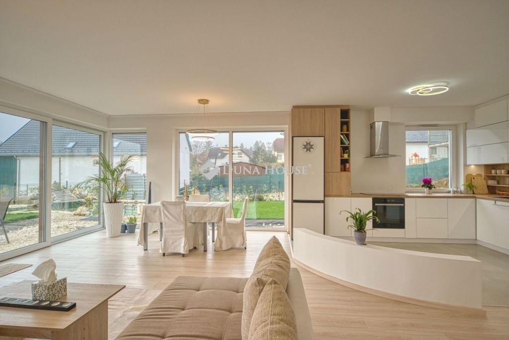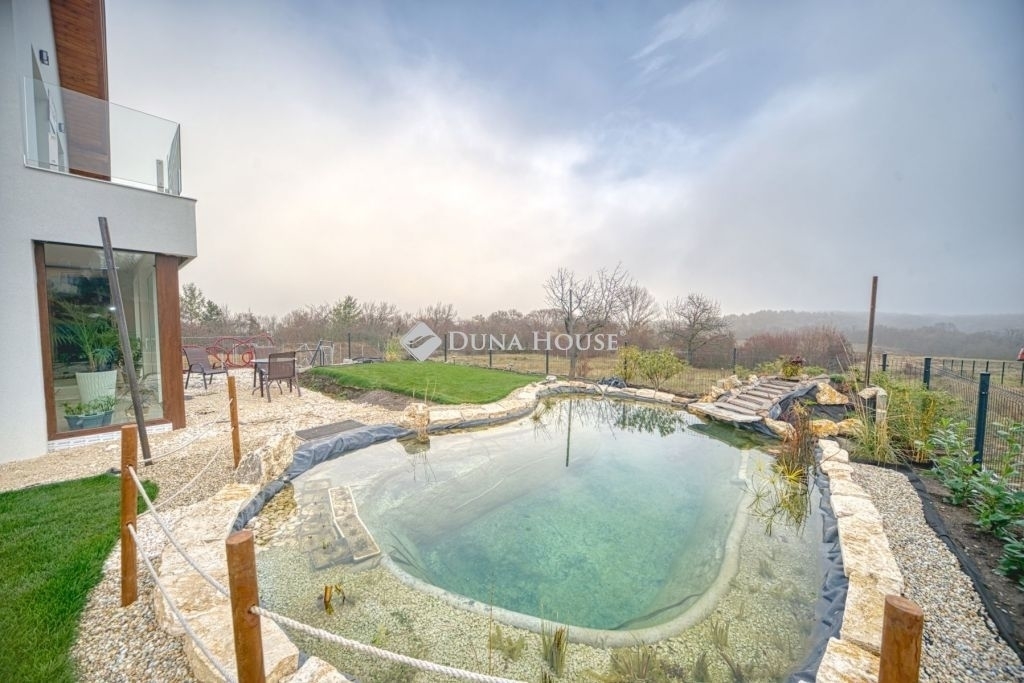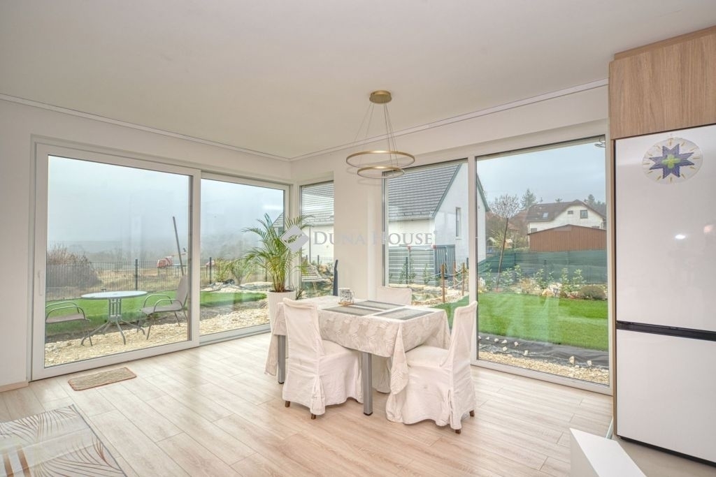 Örök panorámás, minden igényt kielégítő új építésű modern stílusú ikerház.Solymár kedvelt részén: Györgyhegyen, nyugodt környezetben, közvetlen Natura 2000 besorolású terület mellett, a hegyekre néző örök panorámával eladó egy újépítésű két szintes ikerház.Ha csendes környezetben és természetközeli életstílust keres, ne keressen tovább! Ez a 146 négyzetméteres, modern stílusú ikerház Solymár egyik legszebb részén található, ahol a nyugalom és a zöldövezet összetalálkozik.A gondosan megtervezett kert mérete 400 nm, prémium gyepszőnyeggel borított, öntözőrendszerrel és robotfűnyíróval telepített.Az úszótó 6x4 méteres, kb. 100 vízi növénnyel, és csobogó vízeséssel. Az ikerház kiváló elosztással rendelkezik, praktikus kialakítással, emeletenként fürdőkkel, tágas hálószobákkal és intim, kert kapcsolatos terasszal.Az alsó szinten az előszobába belépve azonnal magával ragad a kifinomult ízléssel megálmodott otthon, ahol egy 43 nm-es amerikai konyhás nappali fogad Minket. A prémium minőségű konyhabútor, minden háziasszony álma. Ezen a szinten helyett kapott még egy fürdőszoba, illemhely.Az emeleti szintre kényelmes lépcsőn jutunk fel, három hálószoba, fürdőszoba+wc, várja új tulajdonosait.Az emeleti szobákból élvezhetjük Solymár természeti adottságait az örök panorámán keresztül. A családi otthon 2025-ben épült, közel egy éves látványtervezői munka után nyerte el mai formáját.Az alábbi mondattal jellemezném a házat:Az elegancia a stílus és a minőség találkozása.A vételár ár tartalmazza a gépesített beépített konyhabútort, a teljes befejezést, a térkövezést, kapu kialakítását, és a maradék bútorok befejezését, valamint a terasz kialakítását es burkolását.Az ingatlan Solymáron, csendes környéken található, új építésű ingatlanok szomszédságában, elvehetetlen panoráma, kimagasló infrastruktúra, tiszta levegő és remek közlekedési megoldások jellemzik a környéket.Ez az ikerház tökéletes választás lehet gyermekes családok részére, kialakításának és felszereltségének köszönhetően ebben az állapotában szinte azonnal beköltözhetően.Ne hagyja ki ezt a fantasztikus lehetőséget! Várom hívását!