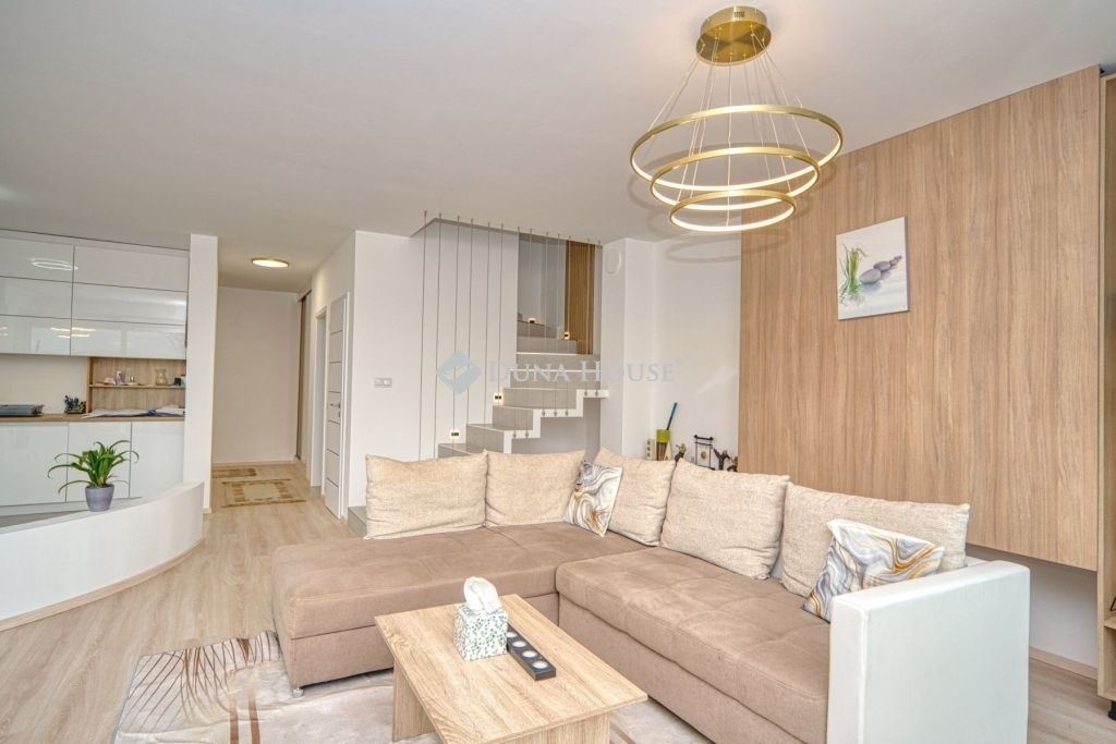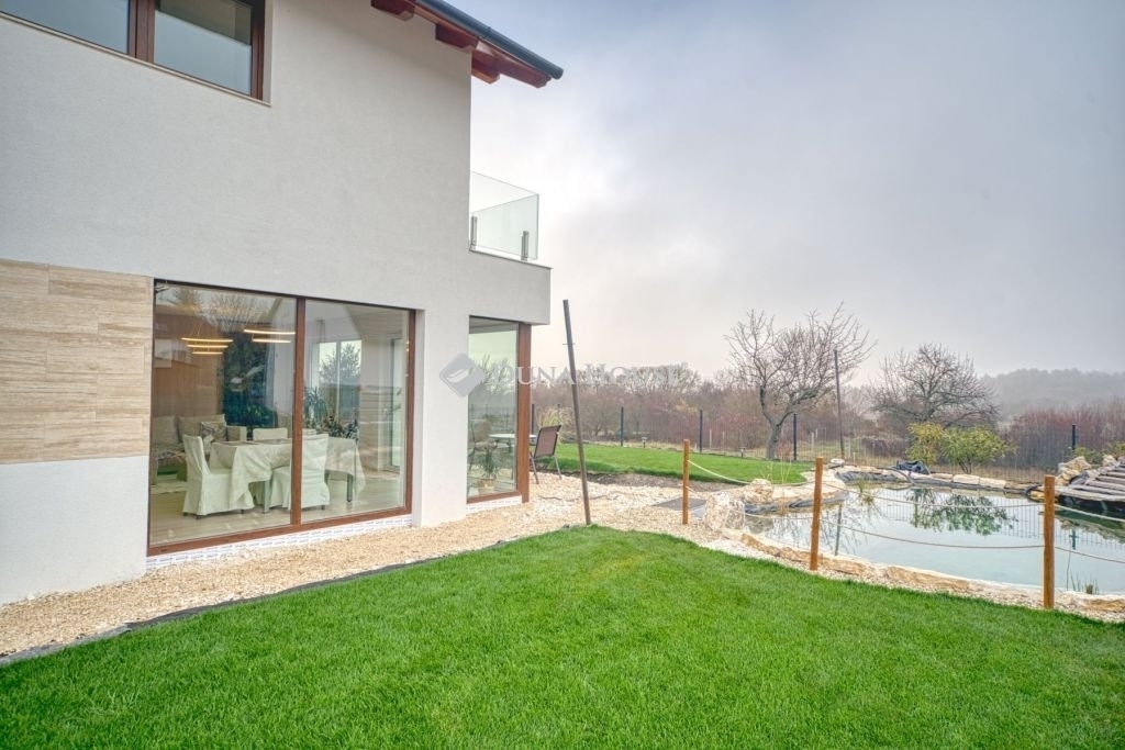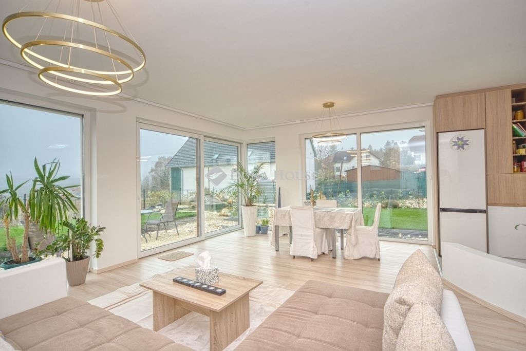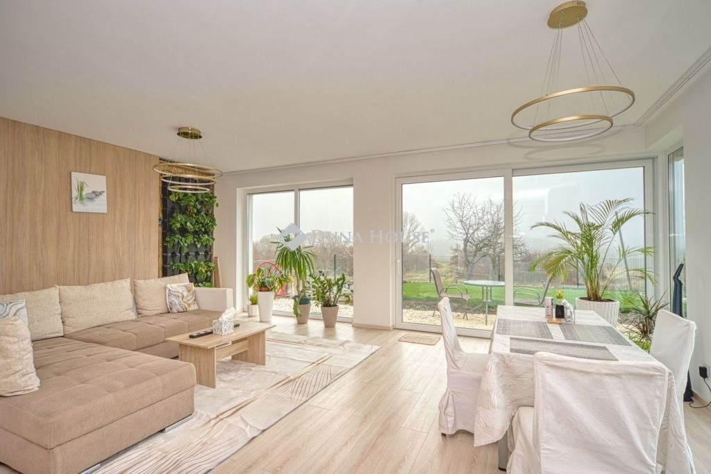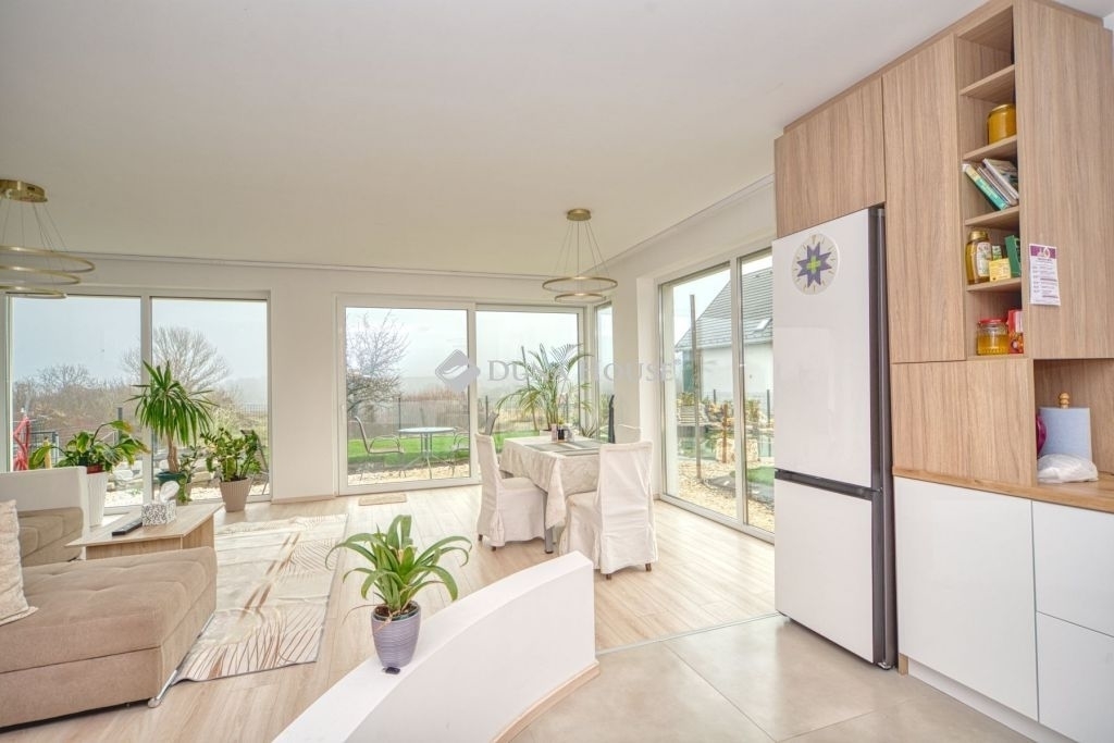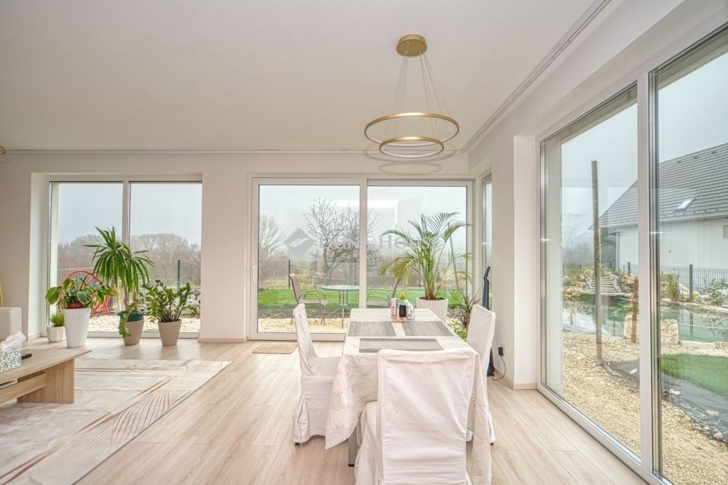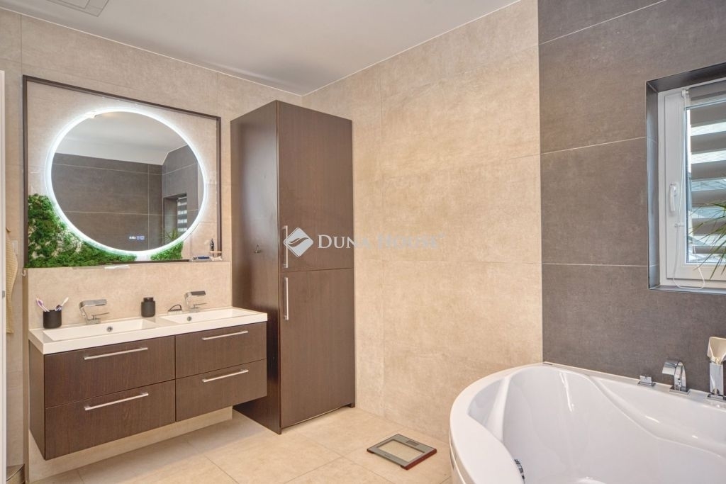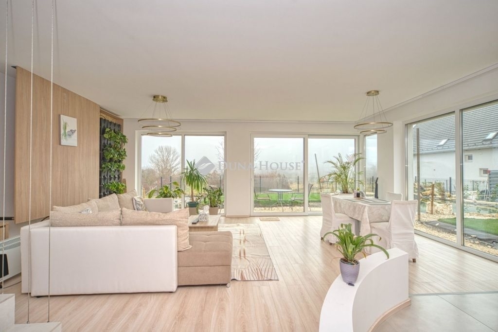 Örök panorámás, minden igényt kielégítő új építésű modern stílusú ikerház.Solymár kedvelt részén: Györgyhegyen, nyugodt környezetben, közvetlen Natura 2000 besorolású terület mellett, a hegyekre néző örök panorámával eladó egy újépítésű két szintes ikerház.Ha csendes környezetben és természetközeli életstílust keres, ne keressen tovább! Ez a 146 négyzetméteres, modern stílusú ikerház Solymár egyik legszebb részén található, ahol a nyugalom és a zöldövezet összetalálkozik.A gondosan megtervezett kert mérete 400 nm, prémium gyepszőnyeggel borított, öntözőrendszerrel és robotfűnyíróval telepített.Az úszótó 6x4 méteres, kb. 100 vízi növénnyel, és csobogó vízeséssel. Az ikerház kiváló elosztással rendelkezik, praktikus kialakítással, emeletenként fürdőkkel, tágas hálószobákkal és intim, kert kapcsolatos terasszal.Az alsó szinten az előszobába belépve azonnal magával ragad a kifinomult ízléssel megálmodott otthon, ahol egy 43 nm-es amerikai konyhás nappali fogad Minket. A prémium minőségű konyhabútor, minden háziasszony álma. Ezen a szinten helyett kapott még egy fürdőszoba, illemhely.Az emeleti szintre kényelmes lépcsőn jutunk fel, három hálószoba, fürdőszoba+wc, várja új tulajdonosait.Az emeleti szobákból élvezhetjük Solymár természeti adottságait az örök panorámán keresztül. A családi otthon 2025-ben épült, közel egy éves látványtervezői munka után nyerte el mai formáját.Az alábbi mondattal jellemezném a házat:Az elegancia a stílus és a minőség találkozása.A vételár ár tartalmazza a gépesített beépített konyhabútort, a teljes befejezést, a térkövezést, kapu kialakítását, és a maradék bútorok befejezését, valamint a terasz kialakítását es burkolását.Az ingatlan Solymáron, csendes környéken található, új építésű ingatlanok szomszédságában, elvehetetlen panoráma, kimagasló infrastruktúra, tiszta levegő és remek közlekedési megoldások jellemzik a környéket.Ez az ikerház tökéletes választás lehet gyermekes családok részére, kialakításának és felszereltségének köszönhetően ebben az állapotában szinte azonnal beköltözhetően.Ne hagyja ki ezt a fantasztikus lehetőséget! Várom hívását!