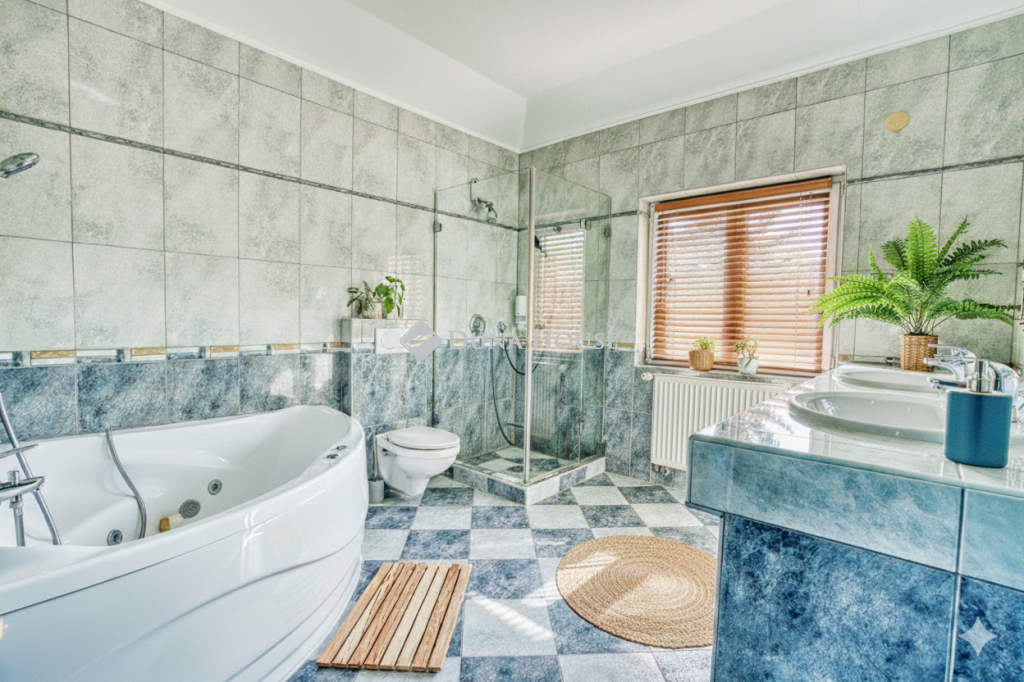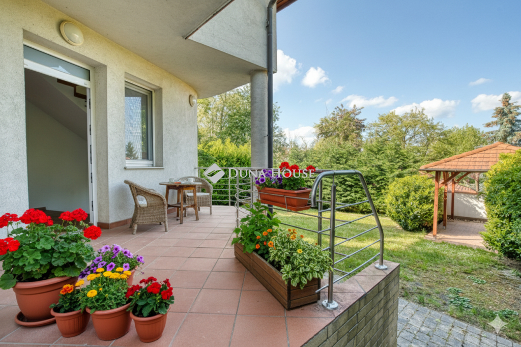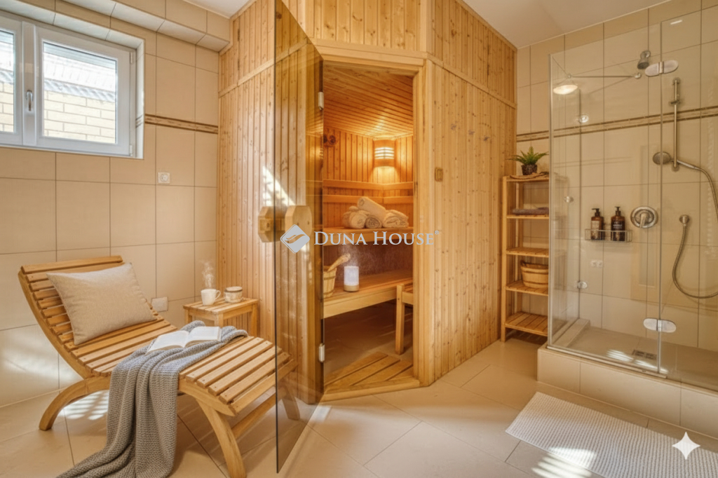 A kültéri élményt automata Rainbird öntözőrendszer, minőségi Semmelrock térkő és a fűthető szabadtéri jakuzzi teszi teljessé. A modern biztonságról riasztórendszer és elektromos redőnyök gondoskodnak.