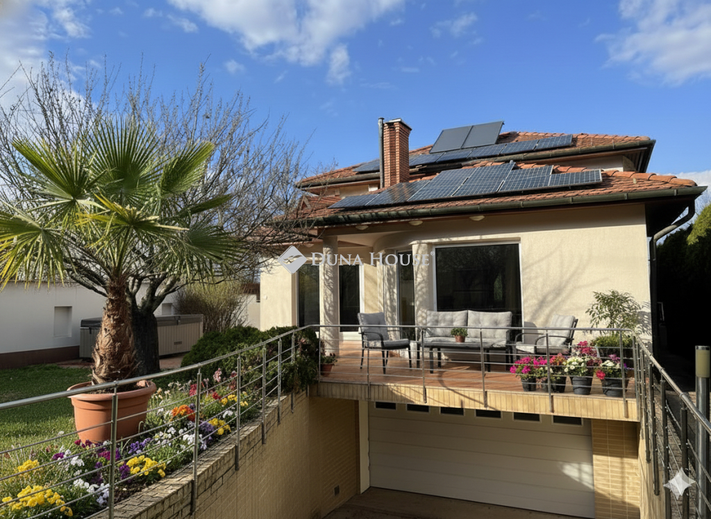Ez a ház a jövő otthona: a 26 db napelem panel a teljes villamosenergia-ellátást biztosítja, garantálva a 0 Ft-os villanyszámlát, míg a napkollektorok a melegvízről gondoskodnak. A gázfűtés a kedvezményes keretbe fér, így a fenntartási költségek minimálisak.