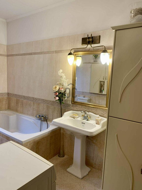 Az egyik szobából egy panorámás terasz nyílik. Itt a villany, víz, csatorna be van vezetve, a válaszfalak készen vannak, burkolni kell és a szanitereket beépíteni.