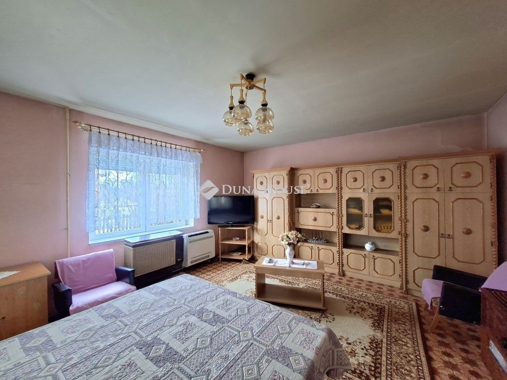 Soponyán ELADÓ 93 m2-es, 2 szobás családi ház azonnal költözhető állapotban, melléképületekkel, garázzsal!Teljes bútorzattal igény esetén!Az épület 1305 m2-es telken helyezkedik el. 1972-ben épült betonblokk és tégla falazattal. A tető 2023-ban lemez cserép borítást kapott.Folyamatos felújítások során az ablakok cseréje részben megtörtént, műanyag, hőszigetelt ablakokra.Az otthon melegét elsődlegesen gázkonvektorok biztosítják, de lehetőség van 2 helyiségben vegyestüzelésű kályhával is fűteni, valamint 1 szobában hűtő-fűtő klíma is biztosítja a kellemes hőmérsékletet.A meleg vizet villanybojler biztosítja.Bővítésre is adott a lehetőség a 21 m2-es zárt folyosó irányában.A ház nagysága élhető nagyságú több gyermekes családok részére is.Az udvarban ólak, melléképületek találhatók akár használatra készen is.Autó parkolása szerelőaknás garázsban lehetséges!Buszmegálló és bolt pár perc távolságra található!Várom hívását! Nézzük meg együtt leendő otthonát!