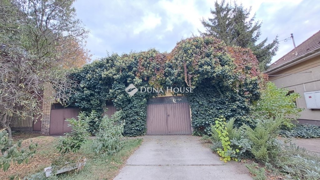 Az udvarban egy kb. 200 m²-es murvás parkoló biztosít kényelmes helyet akár nyolc autónak. A kaputól betonozott úton juthatunk a borostyánnal benőtt melléképülethez, ahol két garázs, szerelőakna, ipari áram és több tároló is található.