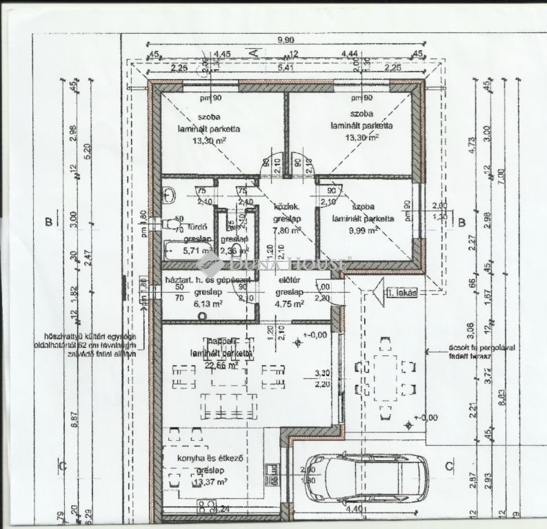 SÜLYSÁP ÚJ ÉPÍTÉSŰ IKERHÁZFÉL, KIEMELKEDŐ MŰSZAKI TARTALOMMALElső Ikerház fél.Kb 270 m2-es telekkel.Sülysápon kínálunk megvételre egy modern kialakítású ikerházfelet, amelynek tervezése és kivitelezése során a minőség, az energiahatékonyság és a hosszú távú fenntarthatóság állt a középpontban. Az ingatlan ideális választás családoknak és mindazoknak, akik korszerű, alacsony fenntartású otthont keresnek. Fontos tudnivalók: Teljes műszaki leírás és dokumentáció rendelkezésre áll A H-tarifa igényléséhez szükséges villanyóra kiépítésre került, az új tulajdonosnak már csak igényelnie kell Várható átadás: 2026 nyár közepe Műszaki tartalom röviden: Levegővíz hőszivattyús melegvíz-ellátás indirekt tárolóval Prémium minőségű szaniterek és csaptelepek Korszerű, szigetelt víz- és szennyvízhálózat Padlófűtéses hőleadás, igény szerint falfűtés és mennyezethűtés Gázmentes, modern energetikai rendszer Csapadékvíz telken belüli szikkasztással megoldva-Redőny felszerelése benne van az árban.-Garázs beálló viacolorral lesz kiépítve.- 25 cm tető SZIGETELÉS.- 20 CM KÜLSŐ SZIGETELÉS.- WPC WALL PANEL kerül kivitelezésre a belső terek burkolása kapcsán.Ez az ikerházfél jövőálló műszaki megoldásokat, magas komfortfokozatot és kiszámítható rezsiköltségeket kínál új tulajdonosának.A NAPELEM kiépítéséhez szükséges kivitelezés előkészítése megtörténik az ingatlanoknál.Ez az ingatlan nemcsak megjelenésében, hanem műszaki megoldásaiban is a jövőt képviseli. A tervezés során a hangsúly az energiahatékonyságon, a komforton és a hosszú távú megbízhatóságon volt. Melegvíz-ellátásA melegvizet levegővíz hőszivattyú biztosítja indirekt tárolós rendszerrel, korszerű, hőszigetelt vezetékhálózaton keresztül gazdaságos és környezetbarát megoldás. Prémium szaniterek és szerelvényekA fürdőszobákba Alföldi porcelán szaniterek (vagy azzal egyenértékű minőség),víztakarékos, öblítőstopos WC-tartályok (Geberit),valamint Mofém / Kludi minőségű csaptelepek kerülnek beépítésre. Szakszerű víz- és csatornahálózatA teljes ivóvíz- és szennyvízrendszer korszerű PVC és KG-PVC elemekből készül, megfelelő hő- és párazáró szigeteléssel, fertőtlenítéssel és nyomáspróbával.Az épületbe belépésnél visszamosható vízszűrő gondoskodik a tiszta vízről, a használatbavételhez akkreditált vízvizsgálat készül. Csapadékvíz-kezelés telken belül megoldvaA tetőről érkező csapadékvíz szikkasztással és vízvisszatartással kerül hasznosításra, korszerű, tisztítható csatornarendszeren keresztül. Fűtés modern hőszivattyús rendszerAz épület fűtését 2 db, egyenként 5 kW-os levegővíz hőszivattyú biztosítja.( 1500 W)A hőleadás padlófűtéssel, igény szerint falfűtéssel történik, REHAU Rautherm rendszerekkel, osztó-gyűjtős szabályozással.Zárt, szivattyús rendszer, automata légtelenítéssel, iszapleválasztással és teljes körű nyomáspróbával. Hűtési lehetőségMennyezethűtés hőszivattyúval, harmatpont-érzékelőkkel, a nyári komfortérzet maximális biztosítására. SzellőzésTermészetes szellőzés nyílászárókon és elszívó ventilátorokon keresztül, opcionálisan központi szellőztető rendszerrel bővíthető. Gázmentes, jövőálló megoldásAz ingatlan gázellátás nélkül, teljes mértékben korszerű elektromos és hőszivattyús rendszerre épül alacsony fenntartási költségek mellett.Várom megtisztelő Hívását!Tekintsük meg új ÁLOM OTTHONÁT!
