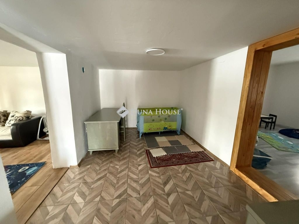 A gyerekszobában emeletes ágy, kiságy és játékok biztosítják a kényelmet.
