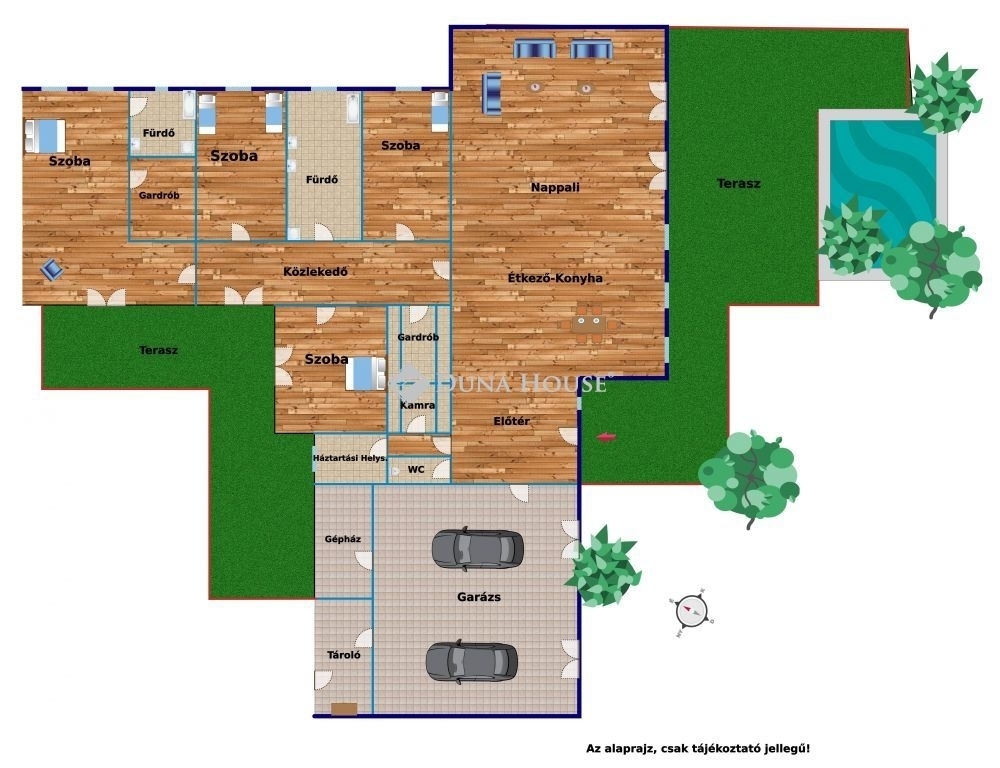 ÉLEN AZ ENERGIAHATÉKONYSÁG, LUXUS SZADÁN!Szadán gyönyörű, természetközeli környezetben, 4 szoba + nappali, két állásos garázzsal, óriási teraszokkal rendelkező, duplakomfortos, minden luxus igényt kielégítő, új építésű családi ház eladó.Az ingatlan 1257 nm-es telken helyezkedik el, nappaliból kilátással a saját tóra. Az ingatlanra 10 kw napelem kerül felszerelésre.Riasztó, kamera rendszer kiépítésre kerül.Az ingatlan magas műszaki tartalommal és alacsony energia igénnyel kerül kivitelezésre.A Falak 30 cm-es Porotherm téglából épülnek.Ablakok három rétegű üvegezésűek, aluból készülnek, redőnnyel, szúnyoghálóval felszerelve kerülnek beépítésre.Födém betonból készül, 30 cm-es szigeteléssel ellátva.Tető betoncseréppel fedett.Fűtés-hűtés-melegvíz ellátás, hőszivattyúval, hőleadás padlófűtéssel történik.Belső kialakítás, színek, szaniterek kiválasztása az Ön igényeinek megfelelően történik.Az ár kulcsrakész állapotra vonatkozik !Kivitelező nagy múlttal rendelkező, megbízható cég !Szada, Budapest belvárosától, 28 km-re,a közigazgatási határtól 12 km-re helyezkedik el. Megközelítés az M3-as autópályán lehetséges.Az ingatlant egyaránt ajánlom a fiatal és idősebb generáció számára is.Településen belül több óvoda, magán óvoda, bölcsőde, iskola található.Közelben található orvos, posta, bevásárlási lehetőség.A helyiek kiemelt figyelmet fordítanak a hagyományőrzésre, közösségi életre és a közbiztonságra (polgárőrség működik), így a város zajából kitelepülők békés, nyugodt, mindennapokra számíthatnak.További bővebb információkért és megtekintésért kérem hívjon bizalommal!Teljes körű pénzügyi és jogi háttér-szolgáltatással várom Ügyfeleimet!Babaváró hitel, CSOK, ÁFA, igénybe vehető !