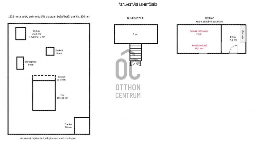- a háznak jelenleg 1 nappalija, 1 hallja és 2 hálószobája van, viszont 1 nappali + 4 hálószoba is kialakítható, lássa az alaprajzokat (átalakítási lehetőségek cím alatt)