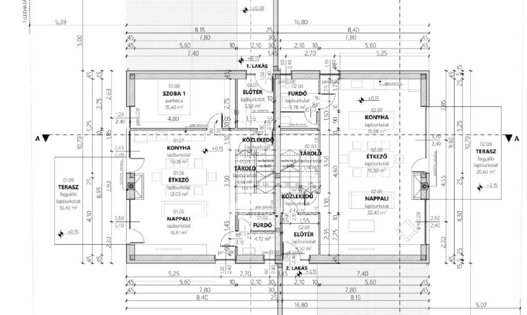 Elrendezés: Földszint: nappali-konyha-étkező + fürdőszoba + terasz + kertkapcsolat Emelet: 3 szoba + fürdőszoba + háztartási helyiség + közlekedő + erkély