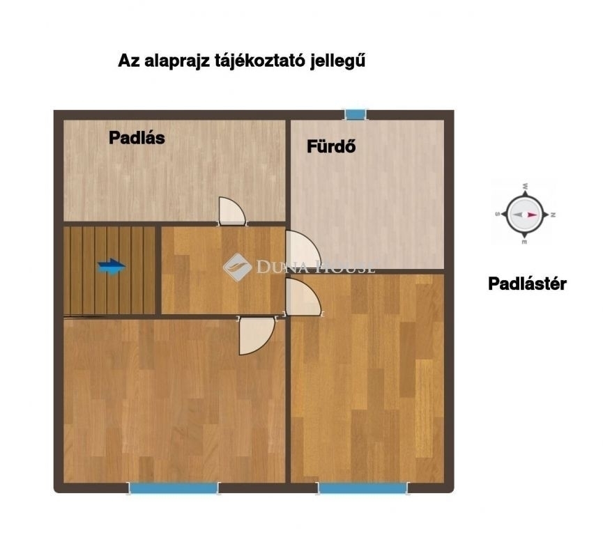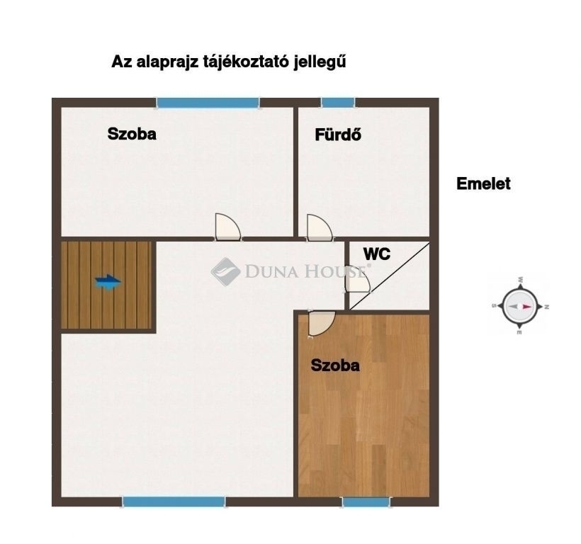 A tetőtéren található egy 11 és egy 10 négyzetméteres szoba, egy fürdőszoba és egy kis padlástér.