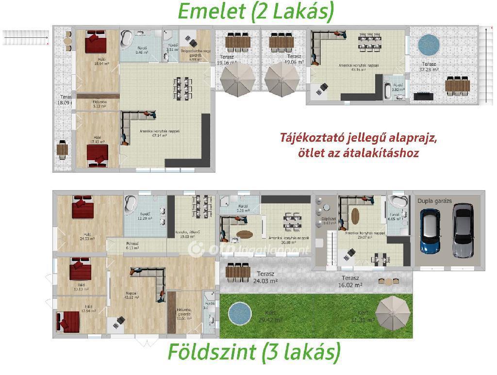 2, 3, 4 vagy akár 5 lakrészre szétválasztható, nettó 353nm-es ház 1466 nm telekkel, dupla garázzsal, pincével!