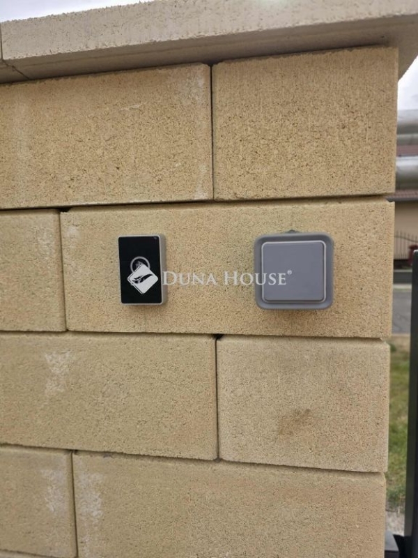 Már a kapun belépve láthatjuk, hogy az családi ház teljesen új kerítést kapott, továbbá Hörmann motoros úszókapu és videós kaputelefon (kapu előtt várakozóval, távollét esetén mobiltelefonról is beszélhetünk) szolgálja az új lakók kényelmét, mely távolról, telefonról is vezérelhető.