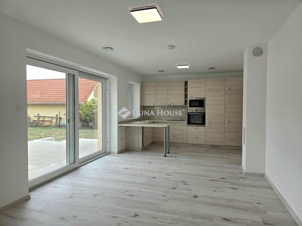 Az egész házra jellemző a praktikus elosztás és kihasználás. Az ingatlanba belépve egy igényesen kialakított előszobát, egy különleges tervezéssel, minőségi anyagokból készült amerikai konyha-étkezőt, és egy nappalit pillanthatunk meg. A teljes ház különleges tervezéssel készült. A nappaliból egy hangulatos, tágas, 35m2-es teraszra léphetünk át. A ház további két különnyíló szobával, fürdőszobával és tárolóval rendelkezik.