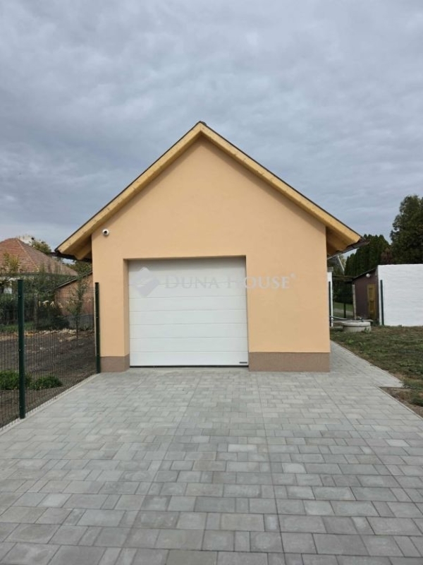 A ház mellett található egy nagy méretű garázs, Hörmann garázskapuval, mely távirányítós működtetéssel rendelkezik.