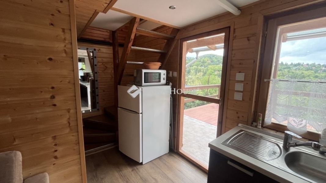 A ház összesen 81 négyzetméteres, kétszintes kialakítással. Az alsó szinten egy világos nappali, konyha-étkező és fürdőszoba kapott helyet, míg a felső szinten egy tágas, egybenyitott tér található, amely ideális lehet hálóként, dolgozószobaként vagy vendégfogadásra is. A ház igazi ékköve a 27 négyzetméteres, örökpanorámás terasz, amelyről lenyűgöző kilátás nyílik a környező hegyekre és a Dunakanyarra tökéletes helyszín reggelihez, pihenéshez vagy esti borozáshoz.