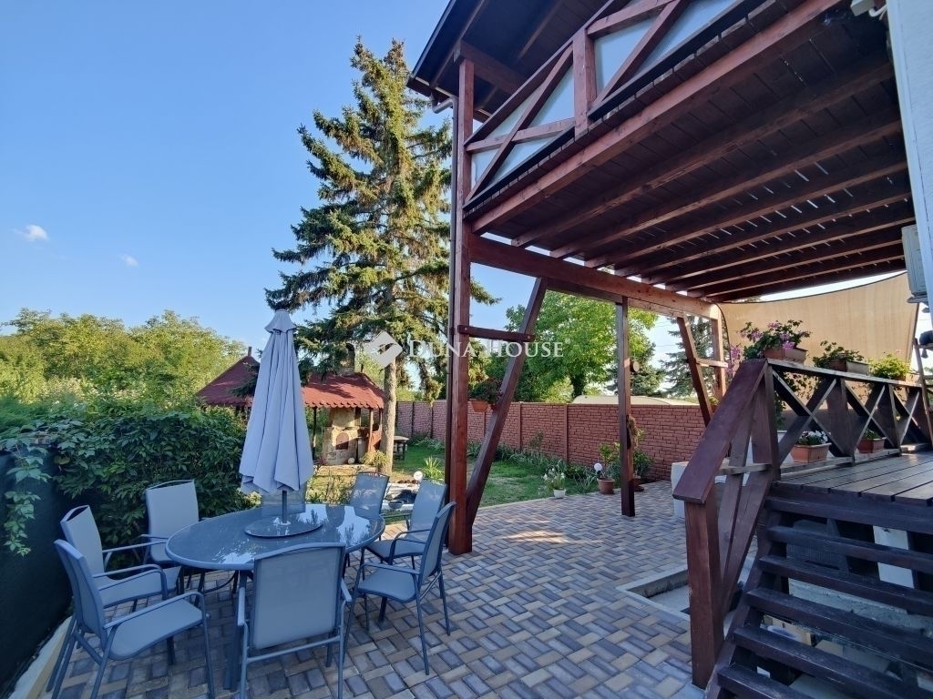 Az udvarban található kerti sütögető, kemence, jakuzzi és a fúrt kút kiváló lehetőséget biztosít a kikapcsolódásra és a családi, baráti összejövetelekre. Az elektromos autó tulajdonosainak örömére az udvarban elektromos autótöltési lehetőség is rendelkezésre áll. A kovácsoltvas kerítés és az elektromos kapu pedig nem csak a biztonságot, hanem a privátszférát is növeli. A konyha modern tágas és világos, gépesített, gránit mosogatóval szerelve. Kiváló választás lehet nagycsaládosoknak is!