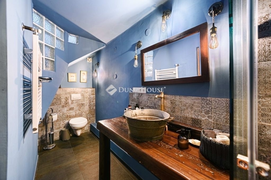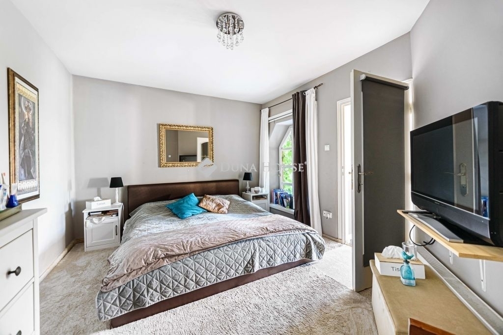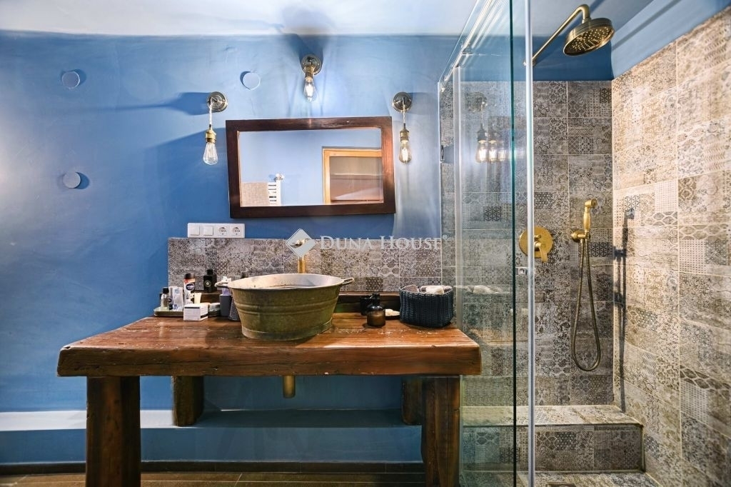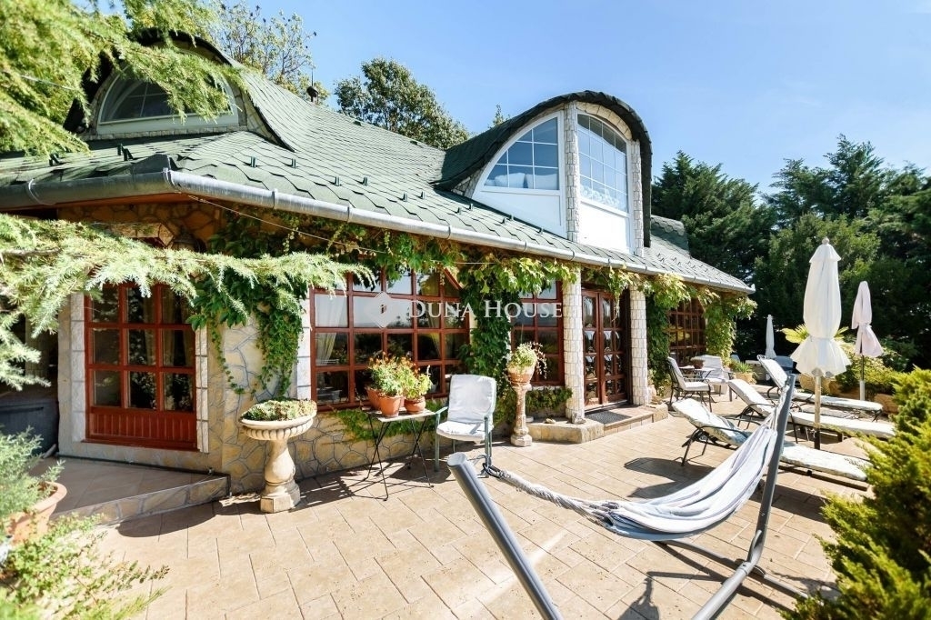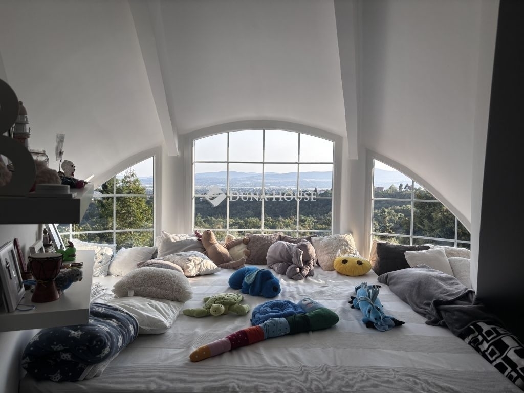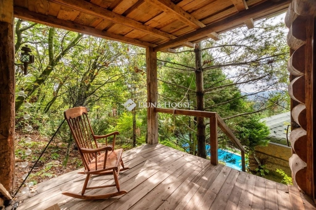 Az ingatlan 2016-tól kezdődően átfogó felújításon esett át: korszerű burkolatok, a teljesen áttervezett alsó szint, valamint a gépészeti rendszerek teljes cseréje teremtette meg a mai kor igényeinek megfelelő kényelmet. 2023-ban modernizálásra került a felső szint, beleértve a nyílászárók cseréjét is, míg a fűtési rendszer központi eleme a kazán 2024-ben lett cserélve.Az alsó szinten a kiszolgáló helyiségek mellett egy exkluzív wellness részleg várja a ház lakóit finn szaunával felszerelve. A nappali szintjén étkező-konyha-nappali, valamint két szoba kapott helyet, míg a legfelső szint jelenleg egy különleges atmoszférájú tágas gyermekszobának ad otthont, azonban a térelrendezés lehetőséget biztosít további két szoba kialakítására is.A ház enteriőrjének eklektikus eleganciáját egyedi tervezésű bútorok és gondosan válogatott prémium márkák képviselik. A kertben kültéri medence gondoskodik a nyári felfrissülésről, míg a telek végében egy hangulatos egyszobás rönkház kínál meghitt menedéket szinte az erdő ölelésében.A ház alatt kényelmes kétállásos garázs biztosítja a parkolási lehetőséget.Az ingatlan igazi éke azonban a lenyűgöző panoráma, amely minden évszakban más-más arcát mutatja és különleges keretet ad az itt eltöltött mindennapoknak.Ez az otthon azoknak szól, akik nem csupán egy ingatlant keresnek, hanem egyedi életérzést, harmóniát, kényelmet és természetközeliséget.
