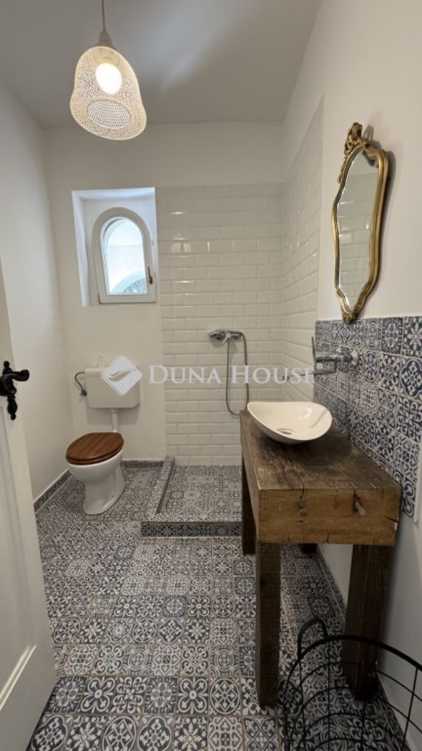 .Az ingatlan alsó szintjén nappali, konyha ,két hálószoba, fürdőkádas fürdőszoba és a nappaliból egy hatalmas fedett majd 40nm-es fedett gyönyörű marokkói burkolatú ,különös atmoszférájú terasz helyezkedik el. A ház alatt pince is található, amit az alsó szint közlekedőjéből lehet megközelíteni.