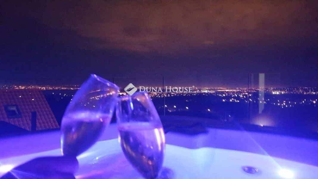 ÖRÖK PANORÁMÁS, önálló családi üdülőház eladó Szentendrén, Pismányban, aszfaltos utcában, 1085 m2-es, körbekerített SAROKTELKEN.A 2020-ban épült, nettó 162 m2 lakóteret + összességében 100 m2 teraszt/erkélyt kínál, jó elosztással és igényes, PRÉMIUM kivitelezéssel.Utcafront: ~1617 m. Elektromos, 4,8 m-es úszókapu, 3 autó számára térkövezett beálló (súlytámfalas kialakítással).Alsó, KERTKAPCSOLATOS szint: külön bejáratos lakrész amerikai konyhás nappalival, hálószobával, fürdő-wc-vel, valamint ~39 m2 részben fedett terasszal. Itt található a gépház és a belső lépcsőház, így a ház egyben is használható.Felső szint (a telek lejtése miatt szintén KERTKAPCSOLATOS, északi bejárattal): amerikai konyhás/étkezős nappali, vendégszoba privát fürdővel, vendég-wc piszoárral, háztartási helyiség, valamint ~26 m2 üvegkorlátos erkély.Emelet: üvegkorlátos, tágas lépcsőházból nyíló ~40 m2 PANORÁMA terasz, 3 személyes Wellis JAKUZZIVAL. Szülői háló, gardróbszoba, PRÉMIUM fürdő walk-in zuhanyfallal, Wellis szabadon álló káddal, dupla mosdóval és wc-vel.Konyha: egyedi, szuper matt AKRIL PRÉMIUM konyhabútor szigettel, beépített márkás gépekkel.Gépészet és komfort: Vaillant 24 kW ELEKTROMOS KAZÁN, 120 l indirekt HMV-tároló, vízkeringtetéses PADLÓFŰTÉS, hálókban FALFŰTÉS, fürdőkben külön vezérelhető törölközőszárító. Alternatív fűtésként FA TÜZELÉSŰ 3D LÁTVÁNYKANDALLÓ.Műszaki és extrák:- H TARIFA- NAPELEMES RENDSZERHEZ 3x80 A-re bővített hálózat- KAMERARENDSZER ELŐKÉSZÍTÉS- Burkolt kültéri lépcsők, 2 cm GRESLAP járda- Díszvilágítás a kocsibeállónál és a járdánál; a ház alulról-felülről külön kapcsolható megvilágítása- Tükör greslap a fő helyiségekben és a lépcsőházban- Szintek között betonfödém; 11°-os, állókorcos lemezfedés fa födémmel- 5 m3 ESŐVÍZGYŰJTŐ- 30 cm Porotherm falazat gyári ragasztóval, 15 cm hőszigetelés- Fenstherm 88 MD PASSZÍV, 3 rétegű, argontöltésű, antracit nyílászárók: 2 db (4,8 m és 3 m) emelő-toló, 4 db 2,8 m toló-bukó; ROTO vasalat, SZÚNYOGHÁLÓ- MOTOROS ALU REDŐNY (PIR habos lamellák)PANORÁMA: Szentendre nagy része, Duna, Lupa-tó, Dunakeszi, Fót, Budapest, Gellérthegy, Budakalász, Pomáz, Skanzen és a Pilisi hegyek.További információért és megtekintésért hívjon a hét bármely napján.