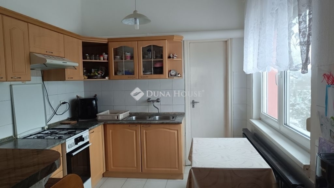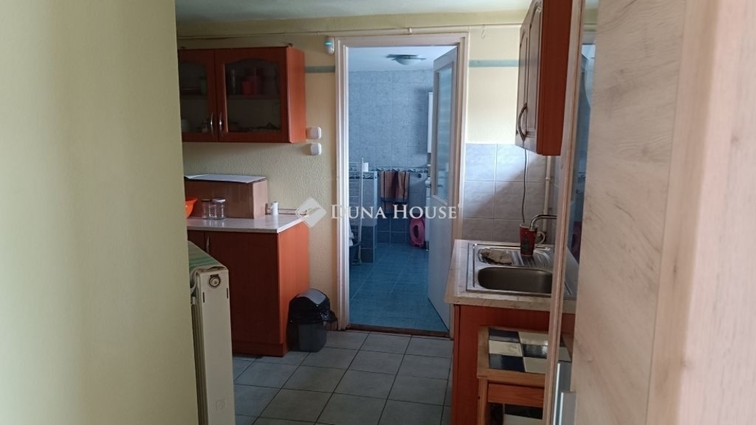 A ház fő részére az első emeletre lépcső vezet, ahonnan egy előszobából nyílik a nagy étkezős konyha, spejz, ezen kívül wc, fürdőszoba, ahol kád és tusoló is rendelkezésre áll. Ezen a szinten 2 nagy méretű utcára néző szoba található.