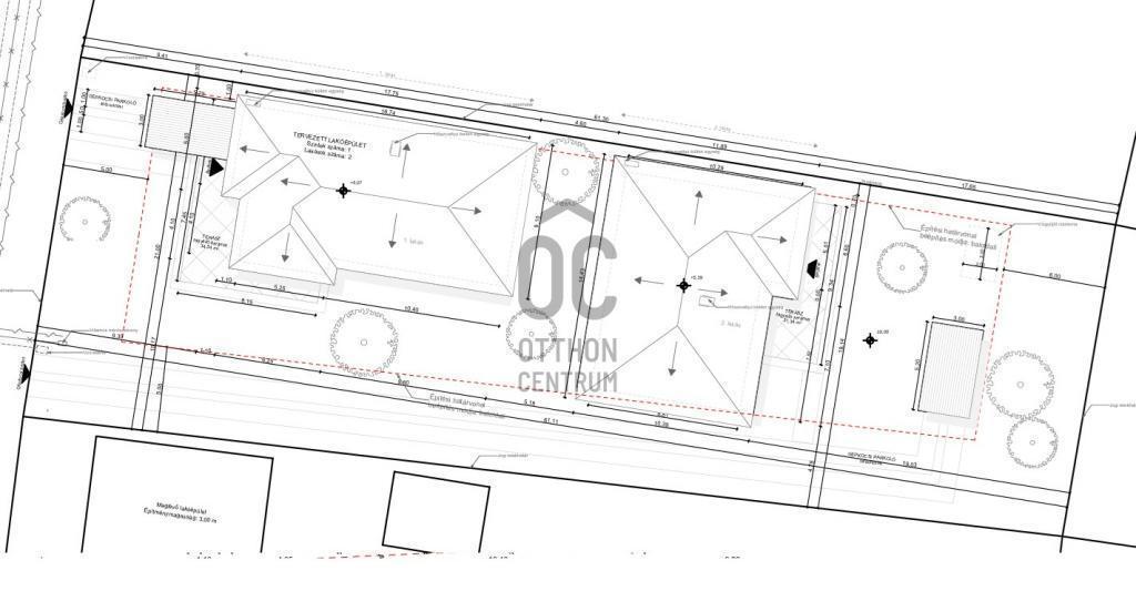 -több részletben épült, egy 522 nm méretű, összközműves telekre