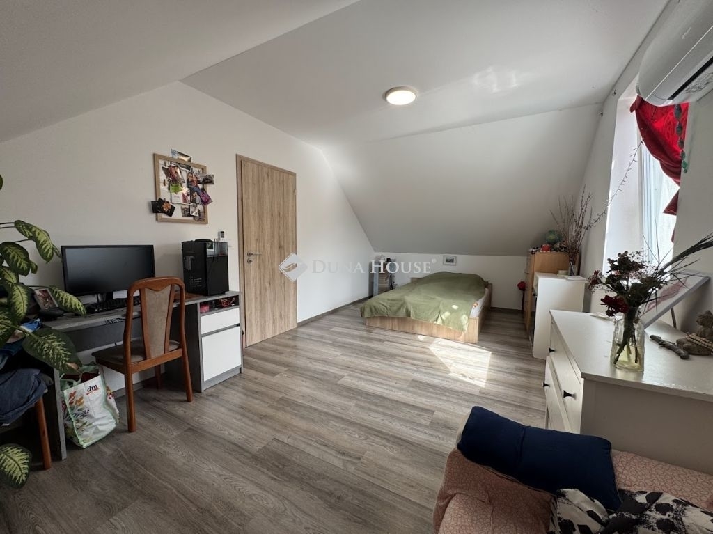Ha a Duna közelségéről nem tud lemondani, kérem olvassa el hirdetésem ! Szigetcsép kedvelt Duna part közeli részén eladó, egyedi tervek alapján 2022-ben épült 2 szintes, tetőtér beépítéses önálló szigetelt családi ház, nyaraló. Lakóterülete nettó 116 m2-es, alsó szintje nappali + 1 hálószobás, étkezős konyhája déli tájolású, fedett terasz kapcsolata tökéletes helyszínt biztosít a családi és baráti összejöveteleknek. Fürdő szobája kényelmes méretű, zuhanyzós kialakítású, külön nyíló mellékhelységgel. Fűtése elektromos fali kazánról működik, padlófűtéses hőleadással. Meleg víz ellátása villany bojleres. A nappaliban és a tetőtérben felszerelt légkondicionáló berendezés egész évben biztosítja a kellemes hőmérsékletet az itt lakóknak. Kertrésze 617 m2-es, mely gyümölcsfákkal beültetett, öntözése fúrt kútról történik, és helyet kapott egy 4 m2-es fém szerkezetű tároló is. Utca frontról a kerti kapun bejutva, térbetonozott részen több autó parkolása is megoldott. Összegezve, ha nem szeretne belekezdeni egy új ház építésébe, és ez az ingatlan mind méretben, mind helyben, és a megvalósult műszaki tartalmával együtt megfelelhet Önnek, kérem hívjon, és tekintse meg !