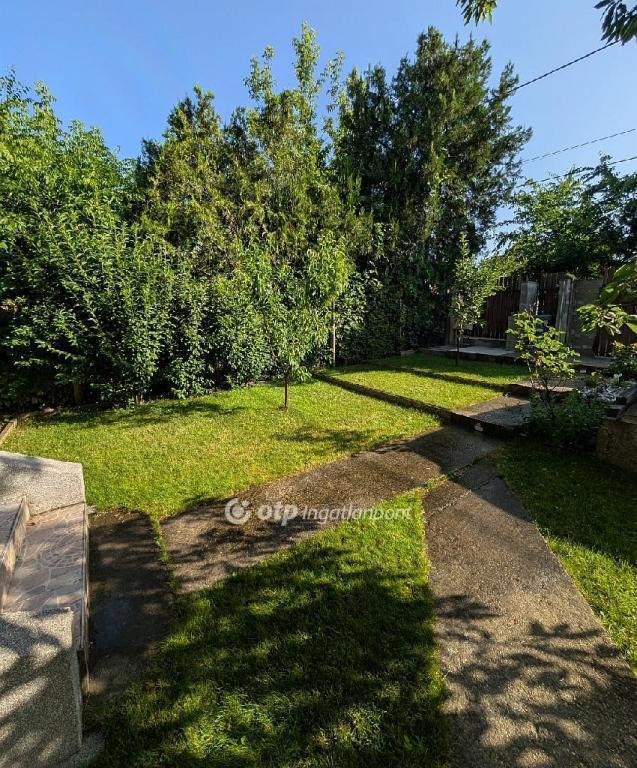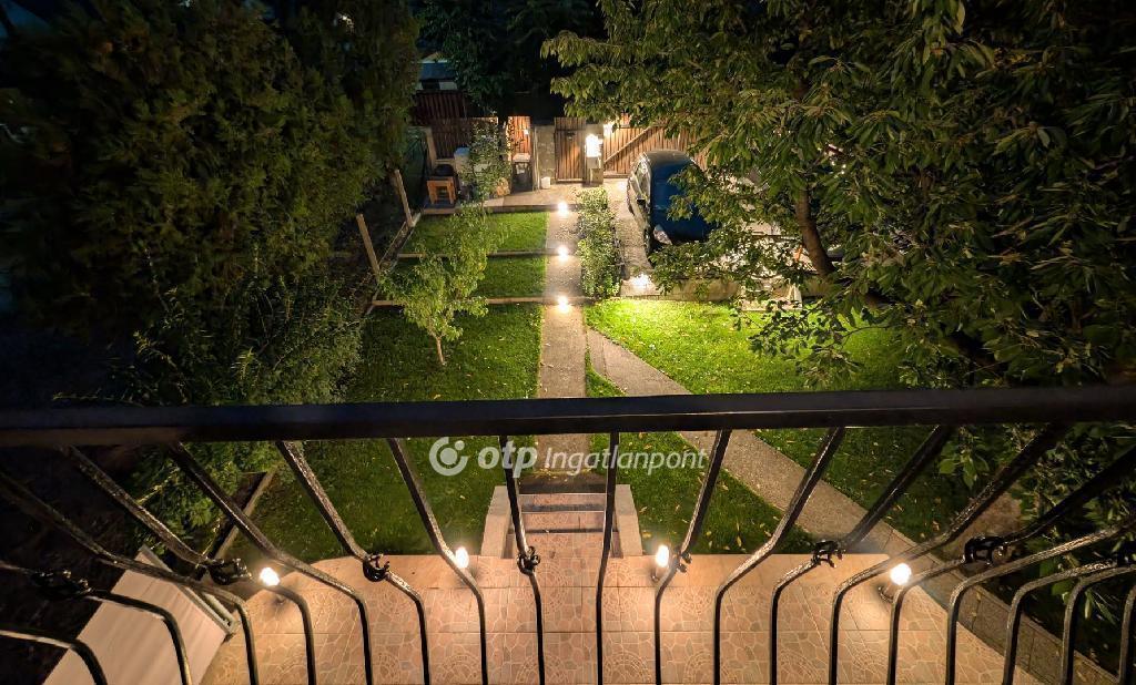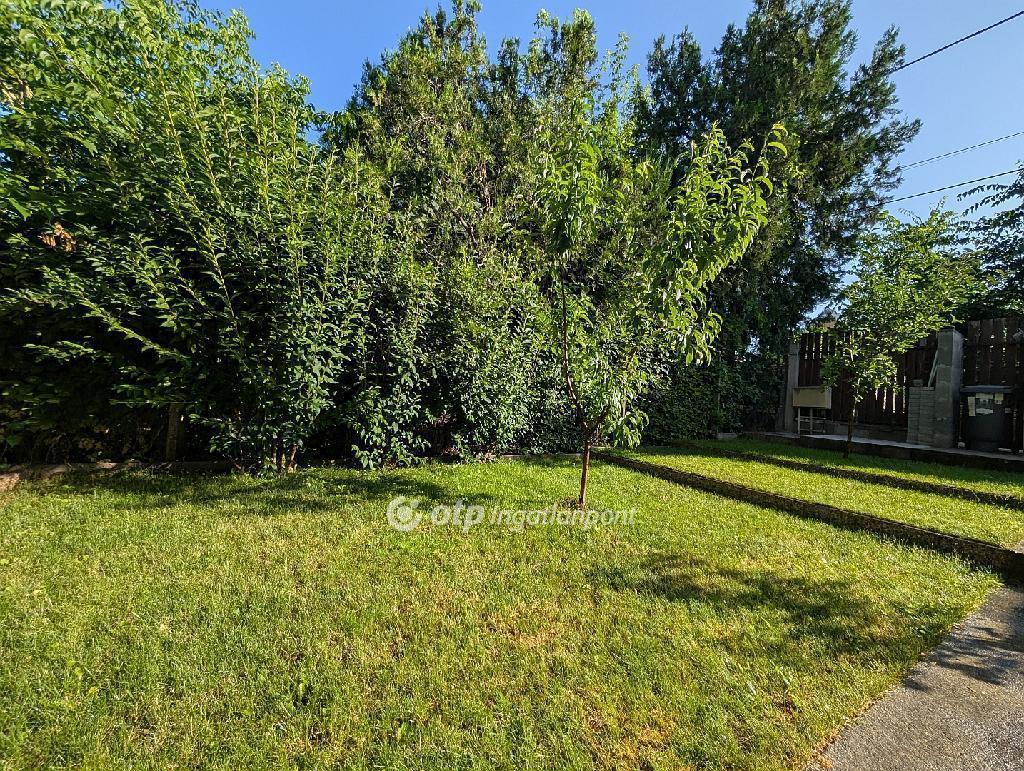 A telek körbejárható, külön előkerttel, a ház előtt pedig dupla nyitott kocsibeálló található.