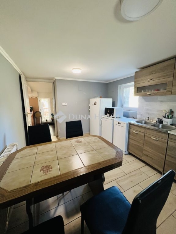 Eladó Szigetszentmiklóson Kéktó közelében, bruttó 200nm, nettó 150nm-es 3 szintes sorház szélső, saját 224nm-es telekkel.A ház 1980-ban épült, lakható állapotú.Az alsó szinten tágas étkező konyha, egy szoba, kamra, fürdőszoba Wc-vel található.Az első emeleten világos nappali-étkező, külön konyha, fürdőszoba került kialakításra.A másodk emeleten két szoba, és fürdőszoba van.A földszinthez terasz kapcsolódik, az emeleti szobákhoz pedig erkély.A ház alatt pince, ami műhelynek, hobbi helyiségnek kivállóan alkalmas.A téli eleget gázkazán adja, a melegvízet bojler.A kert rendezett, parkosított, fúrt kút van.Autóval parkolni egy külön garázsban lehet, ami alatt tárolásra alkalmas hely van.Központhoz közel, mégis csendes környéken helyezkedik el.A ház akár kétgeneráció együttélésére is alkalmas, vagy a földszinti részből könnyedén üzlethelyiség is kialakítható.További információkért,vagy megtekintéssel kapcsolatban hívjon bizalommal.