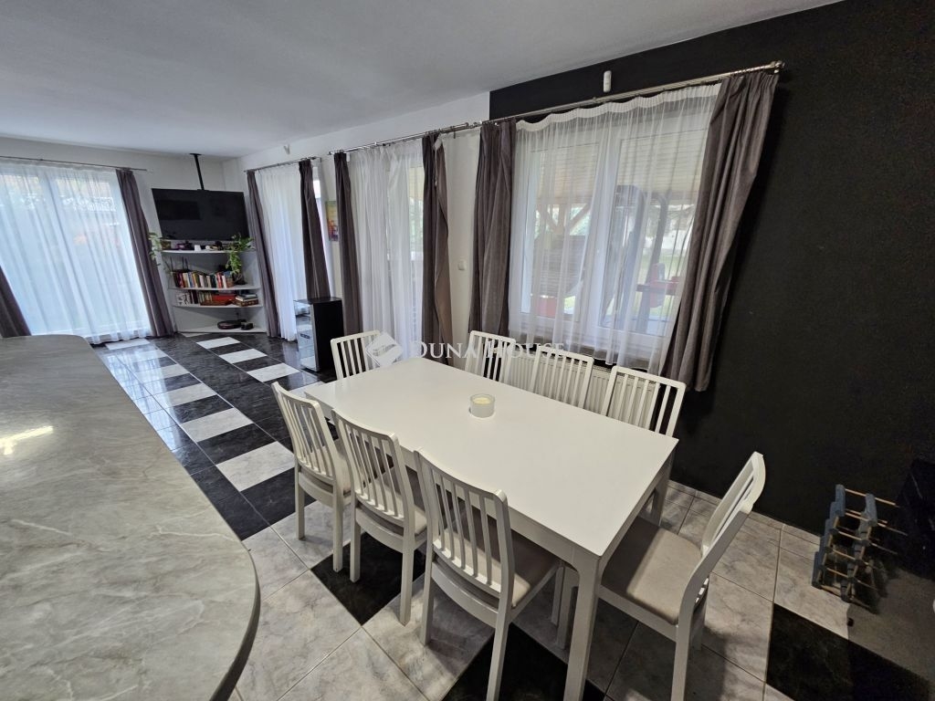 Még mindig keresi kiváló állapotú új otthonát, könnyen megközelíthető, kertvárosi környezetben, tágas terekkel, dézsával, garázzsal is rendelkező önálló családi ház formájában, pár perc sétára a Kis-Dunától?Itt a kivételes lehetőség: 2019-ben teljes körűen felújított, duplagarázsos, tégla építésű, br. 226m2-es, 6 szobás, padló- és radiátorfűtéses, cirkós, klímás, szigetelt, redőnyös, thermo ablakos, cseréphéjazású, duplakomfortos, minden igényt kielégítő, tényleg tágas terekkel és a dupla garázs mellett még több autóbeállási lehetőséggel rendelkező, fedett teraszos, körbejárható, önálló családi ház eladó Szigetszentmiklós-Óváros, Budapest felől könnyebben megközelíthető (buszjáratok a közelben), kiváló, kertvárosi hangulatú, átmenőforgalommentes utcájában!Új otthona akár festés nélkül költözhető, 2 autós garázzsal, beépített bútorokkal, gardróbbal, gépesített amerikai konyhás nappalival, egy (különnyíló szobának is leválasztható) fenti nappalival valamint 4 nagyméretű hálószobával és egy tárolónak használt kisházzal. A nagy ház, teljes körű felújítást kapott, cserépfedéssel, masszív sávbetonalapra épült, 30cm-es teherhordó falazattal és vasbeton födémzettel. Duplakomfortos családi ház, élhető terekkel, mely akár két generációssá is alakítható. Kiváló nyílászárói, padló- és radiátorfűtésének, klímarendszerének, 13cm-es külső szigetelésének is köszönhetően rezsije, méreteihez képest is alacsonyan tartható.Lehetne írni hangzatos, elcsépelt szavakat, mint a „kertvárosi idill, vagy csendes kényelem vagy csak simán álomház”, de beszéljenek inkább az ingatlan kivételes tulajdonságai alábbiakban (a teljesség igénye nélkül).Kültér:-2 rétegű űvegezésű thermo ablakok, redőnnyel, szúnyoghálóval szerelve-30-as teherhordó falazat (13cm szigetelés)-cseréphéjazás-32m2-es szigetelt, lakrészből megközelíthető garázs-plusz autóbeállóhelyek az előkertben-könnyen szeparálható elő- és hátsókert-hatalmas, intim, fedett terasz és hátsó kert-dézsaBeltér:-teljesen gépesített konyha (gáztűzhely, sütő, mosogatógép, szellőzőbe kötött páraelszívó)-reggelizőpult és étkezőrész-felújított víz-, gáz-,villanyrendszer-padló és radiátoros hőleadású gázkazán fűtésrendszer-Gree fűtő-hűtő klímarendszer (minden szoba klímatizált)-duplakomfortos, különnyíló WC helyiségekkel-kád és zuhanyzó is rendelkezésre áll-közlekedőben hatalmas gardrób, tároló kisház-4 különnyíló szoba (+1 kialakítható)-194m2 belső hasznos/nettó (tetőtér) lakótér-...stb.A beépített bútorok az ár részét képezik, de igény szerint teljes bútorzattal megvásárolható (bőrgarnitúra kivételével). A minőségben, apró részletére kiterjedt figyelemmel 2019-ben megújult családi otthonába, igény szerint tényleg csak a bőröndjeit kell hoznia! Nem kell kompromisszumot kötnie, hiszen az utca és elhelyezkedése is kivételes, pár percre a Kis-Duna és buszjáratok (Auhan, Lakihegy, Szabadság utca felé).Találja meg új otthonát eme szép, családi házas, nyugodt környezetben, Bp. felől több gerincútvonalon is megközelíthető helyen, Szigetszentmiklós-Ófaluban!Infrastruktúra szempontjából is kiváló helyen van (NEM Bucka). Óvoda, iskola, buszmegálló, orvosi rendelők, üzletek (Lidl), M0 körgyűrű is pár percre.Érdeklődni a hét bármely napján lehet, ha kérdése van, vagy szeretne időpontot egyeztetni, Forduljon hozzám Bizalommal!***** Ha Hitelt Venne Fel, Vegye Fel A Legjobbtól, Személyre szabott ajánlatért hívjon, vagy küldjön üzenetet! ********** Hitel, CSOK ÉS Babaváró ügyintézés garantáltan a leggyorsabb, legjobb feltételekkel, díjmentes előzetes tanácsadással! ***** Hibás hirdetés bejelentése