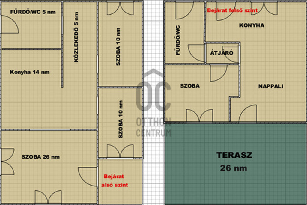 A két lakás igény szerint egybenyitható, így többgenerációs otthonnak vagy befektetési célra is kiváló lehetőséget kínál. A csatornarendszer átemelős szivattyúval megoldott.