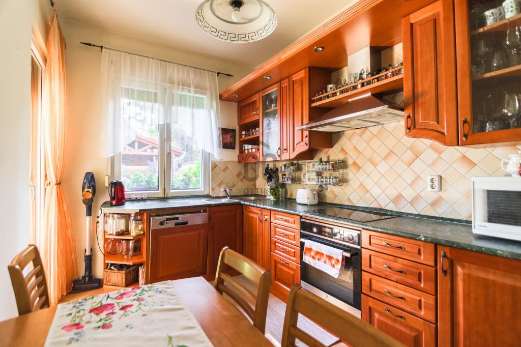 A fűtésről gázkazán gondoskodik, az alsó szinten padlófűtéssel kiegészítve. A nappaliban hangulatos kandalló található, míg az emeleti szobákban 4 darab klímaberendezés biztosítja a kellemes hőérzetet. A ház energiatakarékos működését egy 6 kW-os napelemrendszer segíti (16 db panel), amely jelentősen csökkenti az üzemeltetési költségeket.