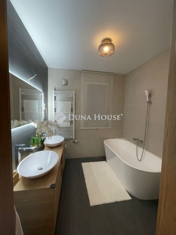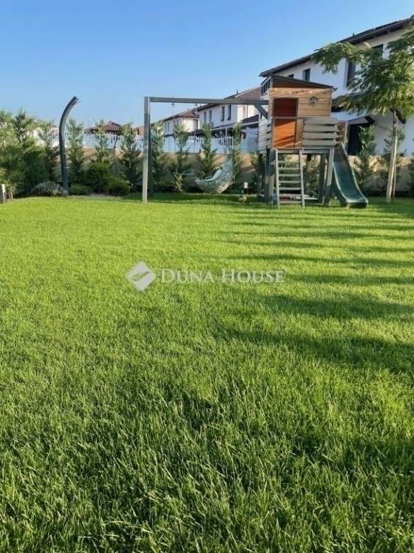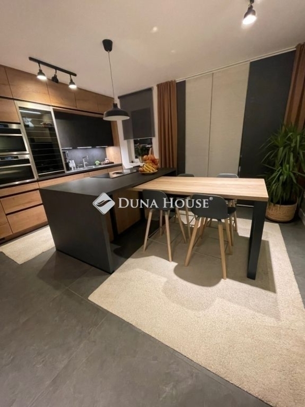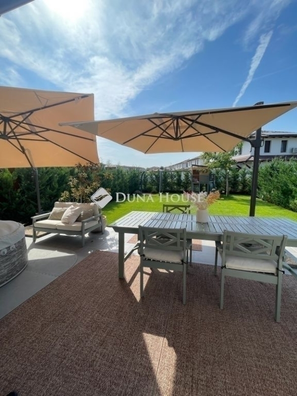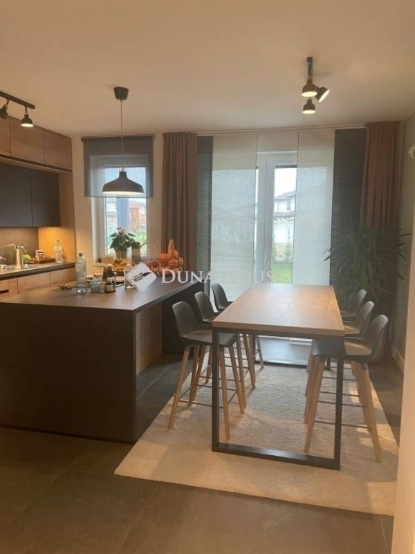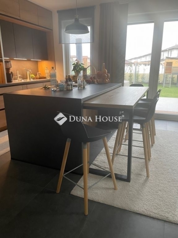 Ez az otthon nem egyszerűen egy ház ez egy életstílus.Egy hely, ahol reggelente a Duna közelsége ad ritmust a napnak, ahol pár perc sétára vár a Sződligeti Jachtkikötő, és ahol minden részlet azt szolgálja, hogy hazaérkezni valódi élmény legyen. A tervezés során a cél egy elérhető luxus megteremtése volt: letisztult formák, időtálló anyagok, okos megoldások és kompromisszummentes minőség belül és kívül egyaránt.A ház szíve a lenyűgöző, egyedileg tervezett, német Nobilia konyha. Itt nemcsak főzni lehet, hanem együtt lenni. A különleges konyhaszigetbe rejtett, rendkívül halk Elica főzőlap, a forgatható, eltolható étkezőasztal és a designer bárszékek mind azt szolgálják, hogy egy hétköznapi vacsora is különleges pillanattá váljon egy családi összejövetelen pedig akár nyolcan is kényelmesen helyet foglalhattok. A dupla AEG sütők, a prémium Blanco csaptelep és az átgondolt részletek mind azt üzenik: itt minden a kényelemről és az élményről szól.A burkolatok és szaniterek választása is ezt az érzést erősíti: vízálló, prémium német padló, olasz hidegburkolatok, spa hangulatú walk-in zuhany, termosztátos csaptelepek a fürdőszoba nem funkció, hanem feltöltődés.A ház műszaki tartalma a jövőbe mutat. A 7,79 kWp-es napelemes rendszer bőven fedezi az ingatlan energiaigényét, sőt, elektromos autó töltésére is alkalmas. Padlófűtés mindkét szinten, okos klímák, programozható redőnyök, világítás és öntözőrendszer mindez egyetlen érintéssel irányítható. Ez az otthon gondolkodik helyetted.A kert igazi privát menedék: zöld falat alkotó Leylandi ciprusok, selyemakác, magnólia, levendula, fűszerkertnek kialakított magaságyások, programozott öntözés, fúrt kút és kerti szolárzuhany. Egy hely, ahol mezítláb sétálhatsz a fűben, ahol a nyári esték a teraszon érnek véget, és ahol valóban kiszakadhatsz a világból.Ez az ingatlan azoknak szól, akik nem csak lakni szeretnének valahol, hanem élni. Akik értékelik a minőséget, a nyugalmat, a természet közelségét és azt, amikor minden nap egy kicsit olyan, mintha nyaralnának. Hibás hirdetés bejelentése