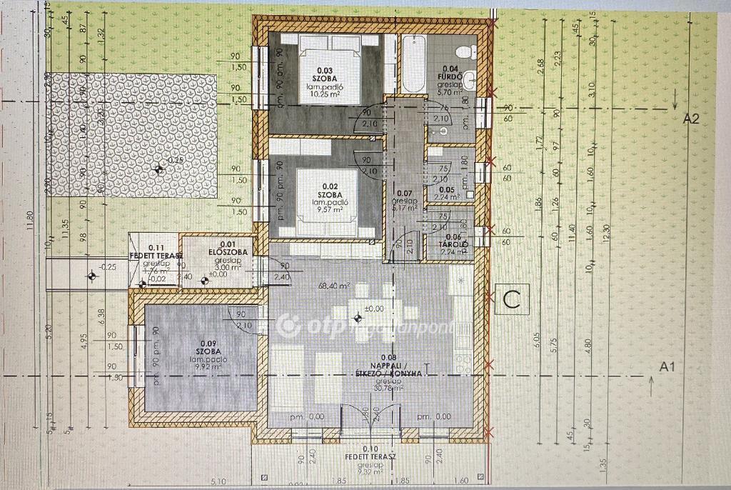 Szolnok város Szandaszőlős városrészen, megvételre kínálunk egy új építésű 90 m2-es családi házat. Az ingatlan egy most kialakítás alatt álló lakóparkban található, másik három ház mellett. A lakások a mai korszerű elvárásoknak megfelelő anyagok felhasználásával kerülnek kialakításra, különös figyelemmel az energia takarékosságra. H-tarifa bekötése megtörtént,ami támogatja a megújuló energiát használó fűtési rendszereket. A házakhoz tartozó telkek praktikus mérete biztosítja, hogy az otthon töltött idő a pihenésről és kikapcsolódásról szóljon. A lakópark Szandaszőlős csendes, rendezett utcájában helyezkedik el és a közelben található oktatási, egészségügyi intézmények valamint kereskedelmi szolgáltatások segítik a mindennapi kényelmet. Szolnok Helikopter bázisa pár perc távolság autóval így az ott dolgozók figyelmébe is kiemelten tudjuk ajánlani. Szandaszőlős Szolnok dinamikusan fejlődő zöldövezeti része ahol a nagyváros által biztosított széleskörű lehetőségek mellett biztosított a vidékies élet nyugalma. További információkért keressen bizalommal.