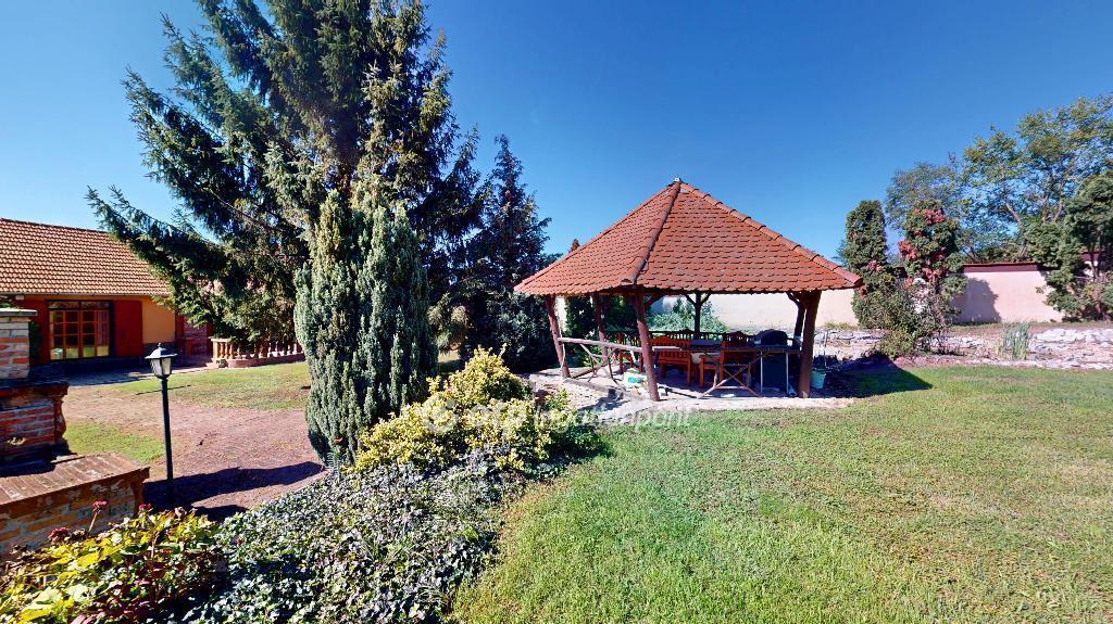 Vendégvárás: A kerti élményt egy nagy méretű filagória teszi teljessé, ahol nyáron is kényelmesen élvezhető a vendéglátás.