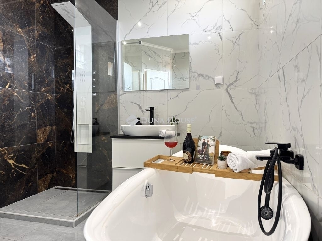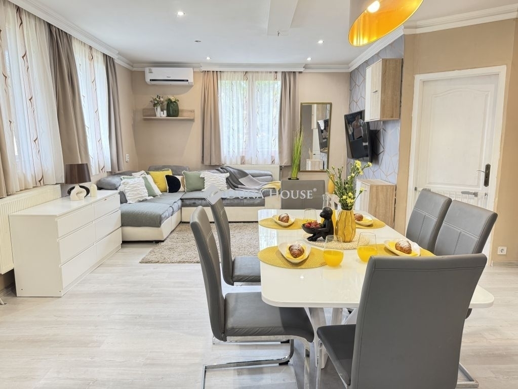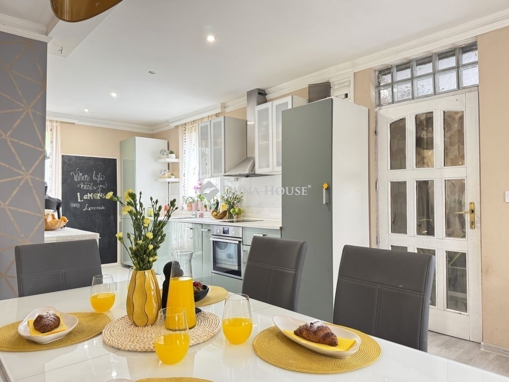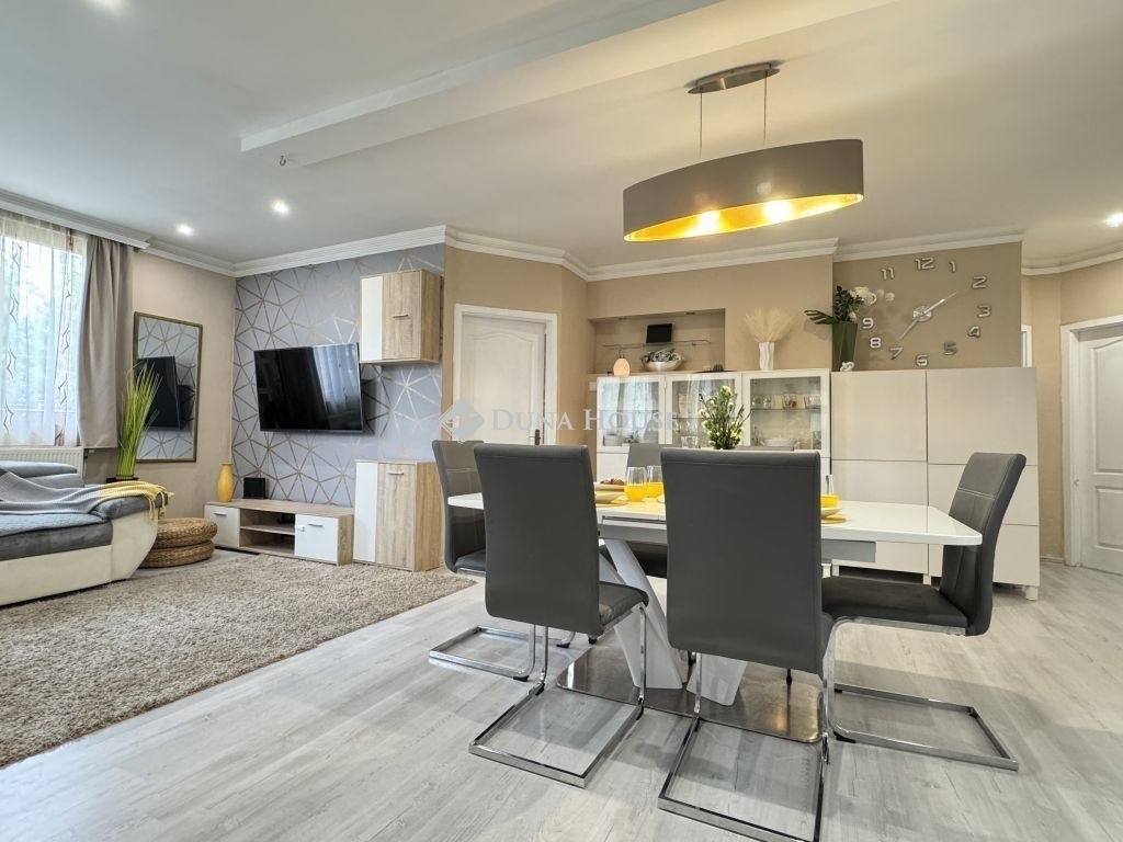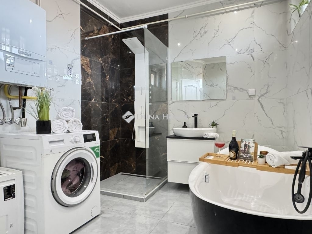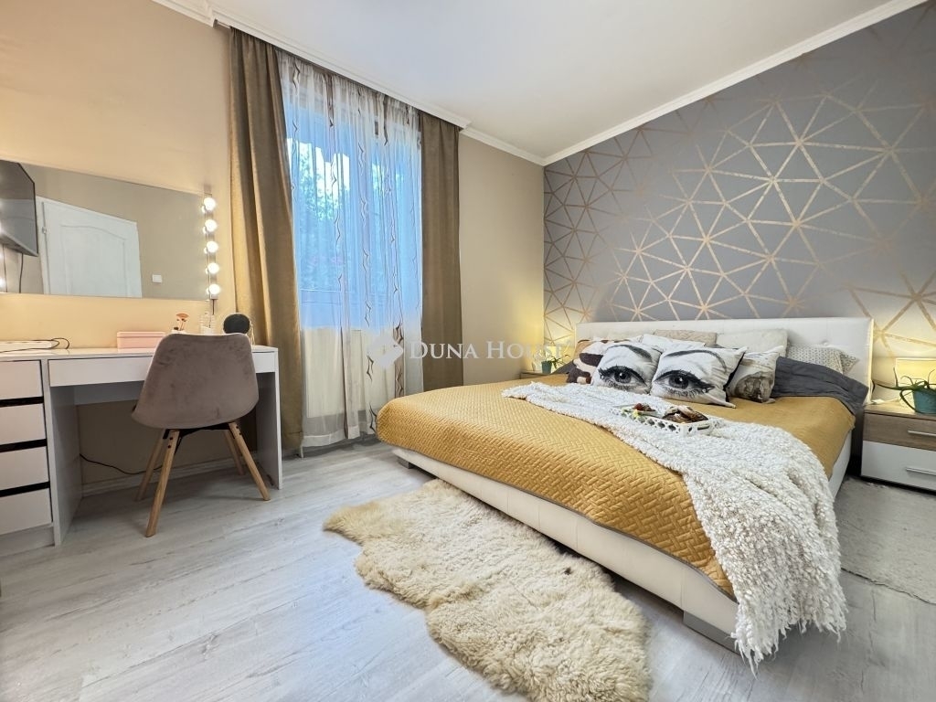 2003-ban épült és 2021-ben teljesen felújított, ízléses családi ház amerikai konyhás nappalival és nagy terasszal az otthon, amire mindig is vágytál!Álmaid otthonát keresed, ahol a modern design találkozik a kényelemmel és a harmóniával? Ne keress tovább! Ez a gyönyörűen felújított családi ház tökéletes választás mindazok számára, akik igényes környezetben, otthonos hangulatban szeretnének élni.Tágas amerikai konyhás nappali a nappali és az étkező tökéletes egységet alkot, világos, barátságos tér, amely ideális családi együttlétekhez vagy baráti összejövetelekhez. A modern design, a stílusos világítás és a harmonikus színvilág azonnal otthonossá varázsolja. Három kényelmes hálószoba mindegyik szoba saját stílussal, természetes fényekkel biztosítja a nyugodt pihenést Modern fürdőszoba káddal és tusolóval az elegáns burkolatok, a minőségi szaniterek és a wellness hangulatot idéző kád gondoskodnak a tökéletes relaxációról. Stílusos, gépesített konyha letisztult megjelenés, fényes felületek, praktikus elrendezés és közvetlen kijárat a nagy teraszra, amely a kertre néz tökéletes reggelik, délutáni kávék vagy baráti grillezések helyszíne lehet.Teljeskörű felújítás az ingatlan minden négyzetmétere a minőségről és gondosságról árulkodik. Modern burkolatok, fa nyílászárók, energiahatékony megoldások és átgondolt belsőépítészeti részletek jellemzik.Ez a ház nemcsak egy lakóhely, hanem egy életstílus. Egy olyan otthon, ahová jó megérkezni, és ahol jó felébredni minden reggel.Műszaki tartalom, méretek és adatok:Hőszigetelés:- Homlokzati hőszigetelés: 5 cm- Padlástér: 40 cm üveggyapot hőszigetelés- Szobák felett az álmennyezeten 5 cm kőzetgyapot + 40cm üveggyapot hőszigetelés.- Kétrétegű fa nyílászárók.Tető és falazat:- Betoncserép fedés és ytong tégla.Villamos hálózat:- Teljesen új villanyvezetékek.- Minden nagyfogyasztó külön áramkörön.- 11 db 16 Amper és 3 db 10 Amper megszakító.- 400 Volt áramellátás kiépítve.Fűtés és hűtés:- Flexibilis csőrendszer.- Vaillant ecoTEC pro kondenzációs kombi gázkazán (24,9 kW).- Whirlpool 6th Sense hűtő-fűtő klíma (2,6 kW).Padlóburkolat:- Egységes laminált padló a teljes házban.- Konyhában vízálló laminált padló.Fürdőszoba:- Wellis szaniterek: fali WC, térben álló kád, zuhanypanel, mosdókagyló és csaptelepek.Telek:- Teljes méret: 1764 m².- Kb 900-1000 m² udvar.- A gyermek játszótér mögött még kb. 800 m² akácerdő, mely gondozást nem igényel.Terasz:- 33 m²-es terasz közvetlen kijárattal a konyhából.Az ingatlan kizárólag olyan vevő részére eladó, aki a teljes vételárat az adásvételkor, saját forrásból biztosítani tudja. Keressen bizalommal az ingatlan személyes megtekintése céljából.