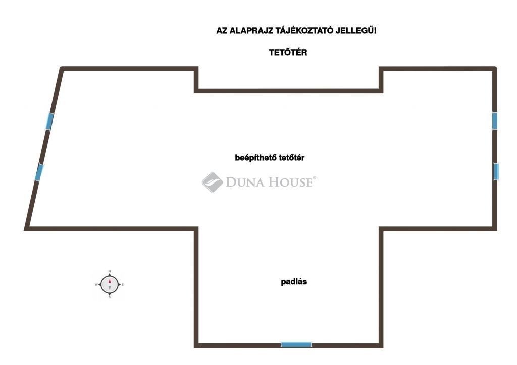 A házban további helyiségek kialakítására ad lehetőséget a szintén 90 m2-es tetőtér és 33 m2-es padlástér ahová a szükséges kiállások -víz, villany- kialakítása megtörtént. Az eredeti tervek szerint itt további kettő, saját gardróbbal ellátott szoba, fürdő, teakonyha és egy nagy méretű tároló kaphat helyet, de semmi nem szab határt az új tulajdonos elképzeléseinek, amennyiben máshogy osztaná fel ezt a teret. Jelenleg ide a garázsból vezet feljáró, de kialakítható a földszinti nappaliból vagy az udvarról is lépcsőház.