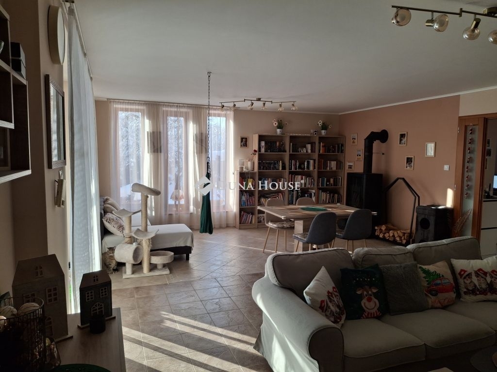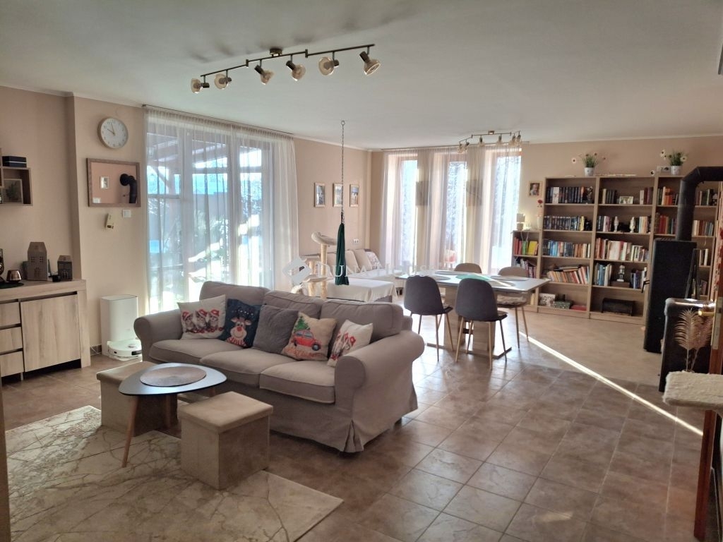 A nappaliból egy kellemes, 16 m2-es, a közelmúltban felújított teraszra is kiléphetünk, mely remek helyszíne lehet pihenésnek, játéknak. A ház ezen része azonnal költözhető állapotú, ízlésesen berendezett. A teljes ingatlan rendszeresen karbantartott.