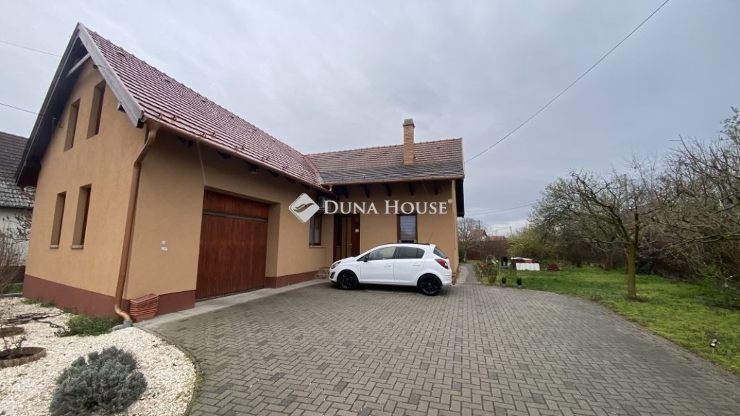 A családi ház a község központjától néhány perc sétára, nyugodt, rendezett mellékutcában épült 906 m2-es, teljesen közművesített telekre, amely mára számos termő gyümölcsfával és rendezett, parkosított udvarral büszkélkedhet. Az utcafronton elektromos kapun keresztül juthatunk be az udvarra és kialakítottak egy gazdasági bejárót is a kert hátsó része felől. A locsoláshoz fúrt kút is rendelkezésre áll.