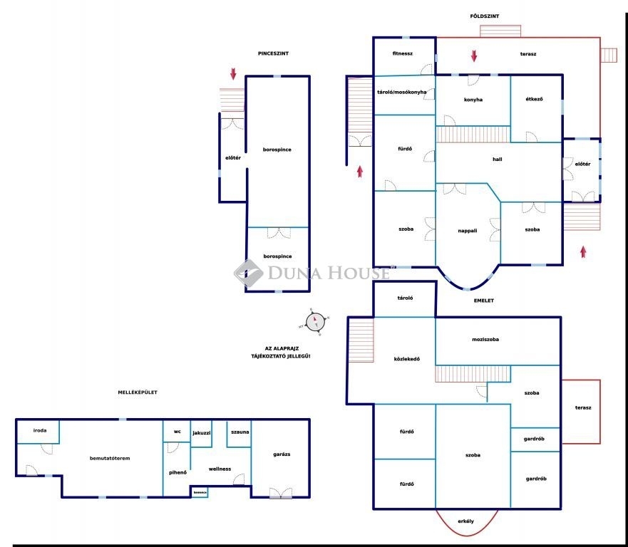 A villa 400 m2-es lakóterülettel, nagy tetőtérrel és 63 m2-es borospincével rendelkezik.